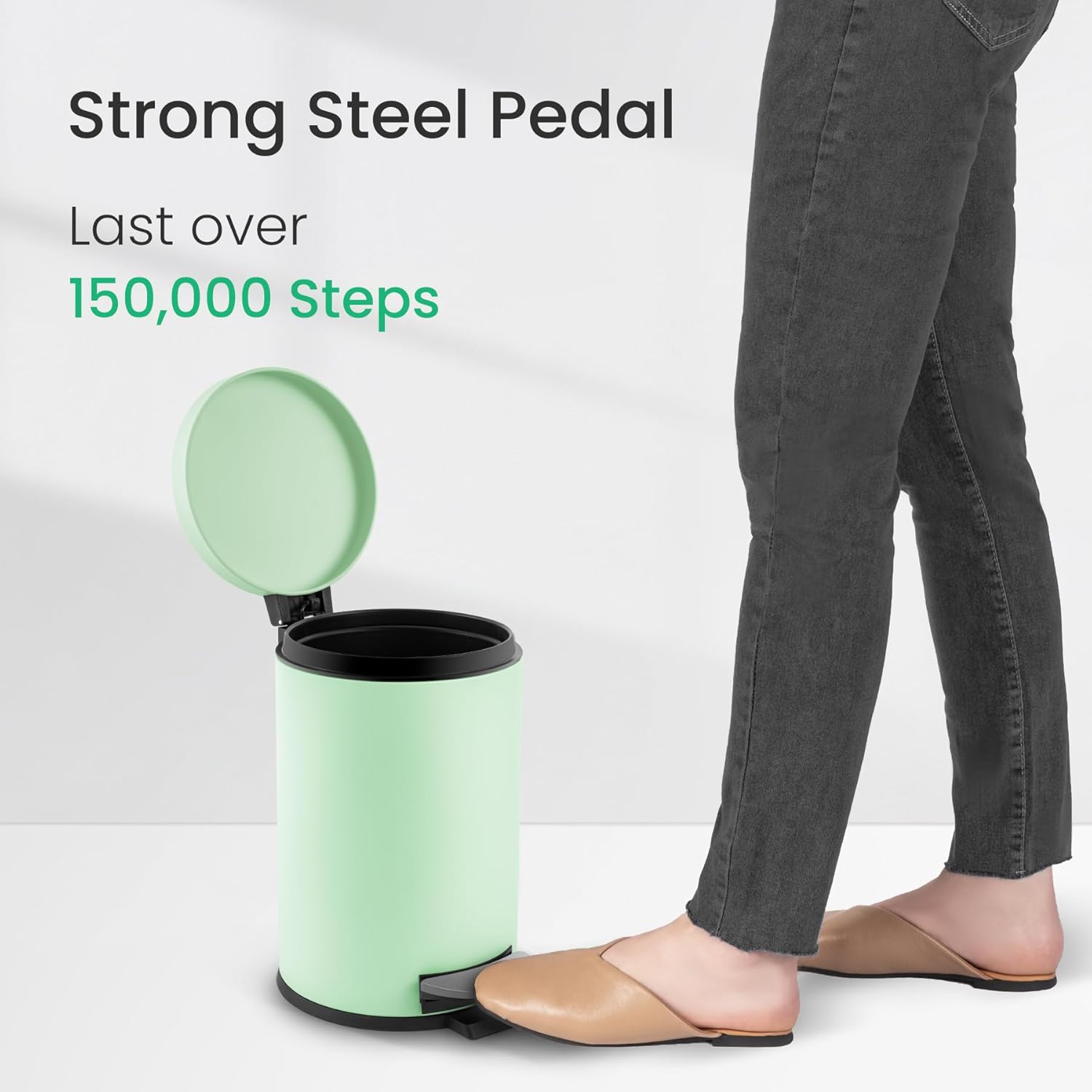 Cesun 1.2 Gallons Small Green Trash Can, Bathroom Garbage Can with Lid and Foot Pedal, Mini Round Wastebasket for Bathroom, Bedroom, Office, 4.5 Liters / 1.2 Gallons, Green