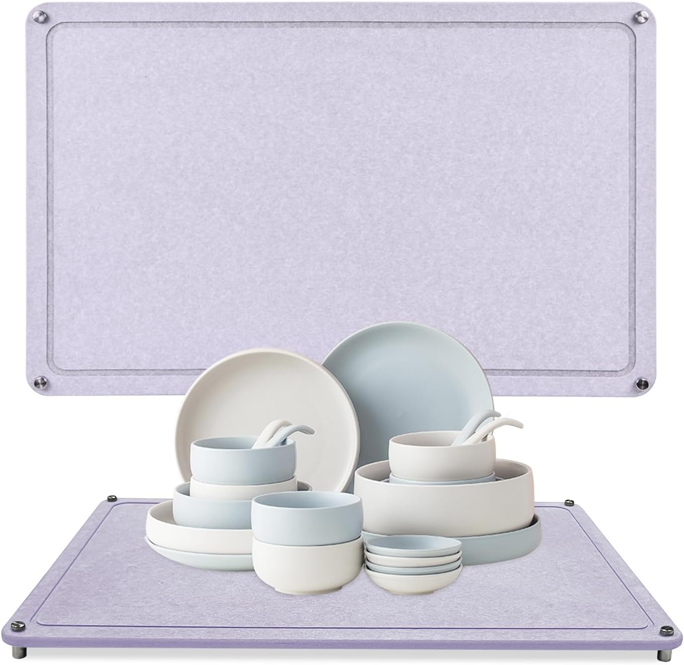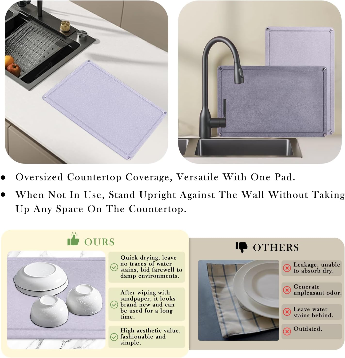 • 【 Versatile Use & Modern Design 】Not just a quick dish drying stone mat for kitchen sink, it also doubles as a heat-proof mat, or pet feeding mat. Its sleek, natural design makes it a practical and thoughtful gift for friends or family who value a clean, organized kitchen.Tips:Avoid spilling dark liquids like coffee or red wine to prevent staining
