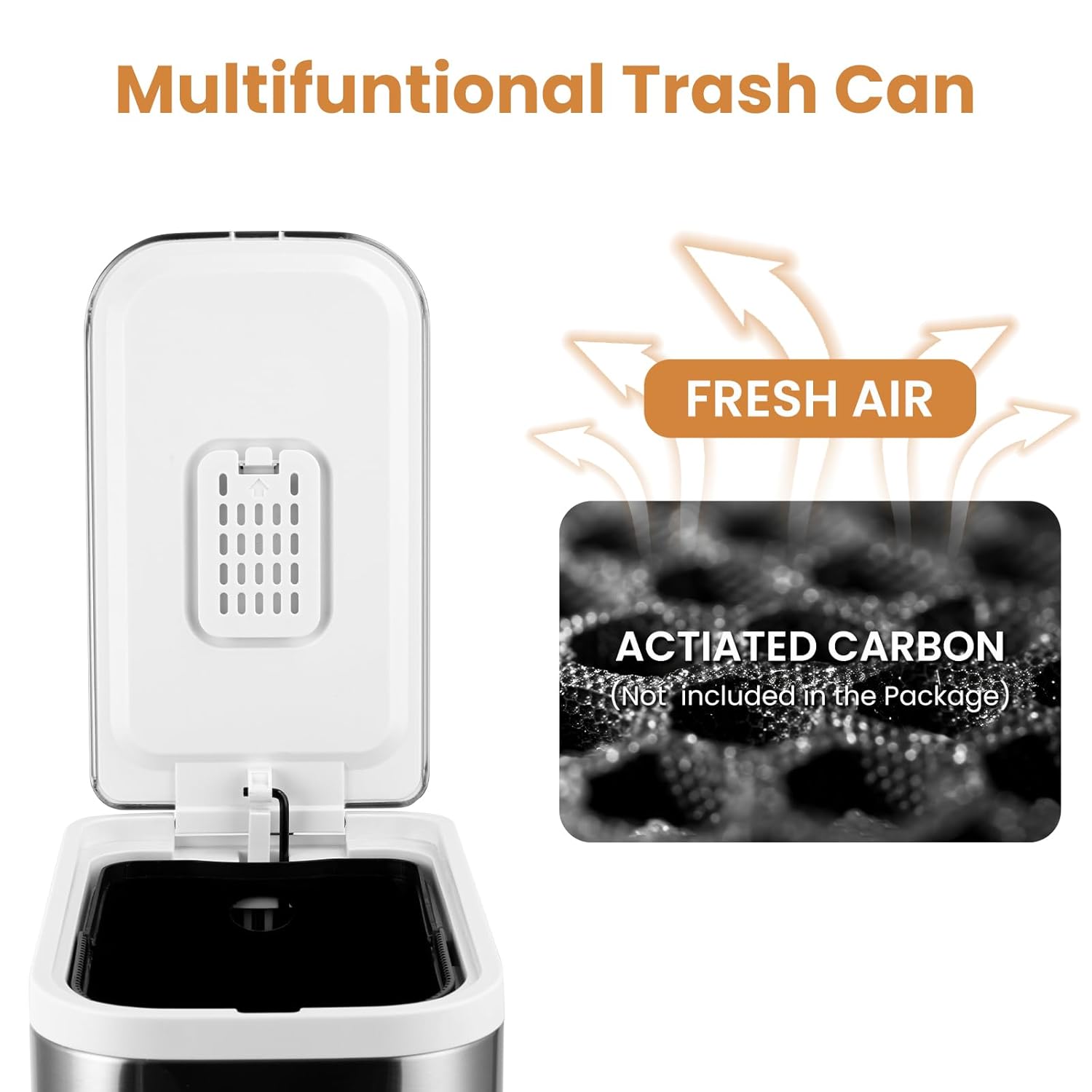 • Soft Close & Stay Open Lid:The stainless steel trash can is made of a stay open function and pushes the lid at 90° when release the pedal.The soft close lid has a great feature—it closes quietly and smoothly.