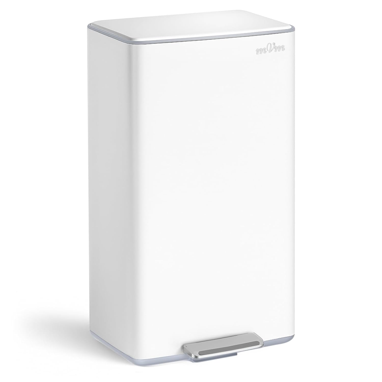 mVm 10.6 Gallon Heavy Duty Step Trash Can with Lid, Foldable Foot Pedal Bin for Kitchen Office Dormitory Home Rooms (White)