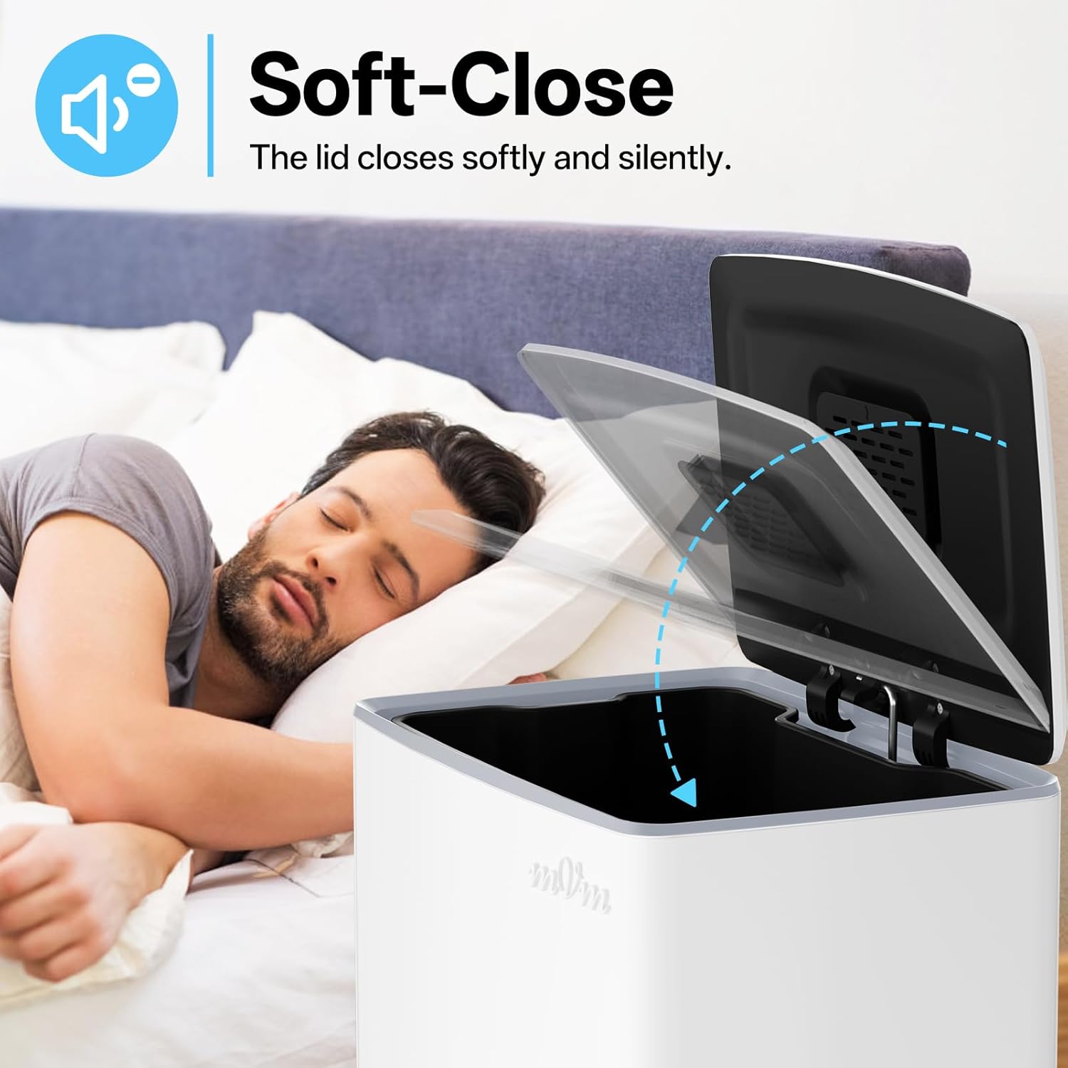• Odor seal: The mVm trash bin is equipped with a carbon fiber filter that absorbs and neutralizes odors inside the bin, and the lid closes tightly to prevent odors from escaping.