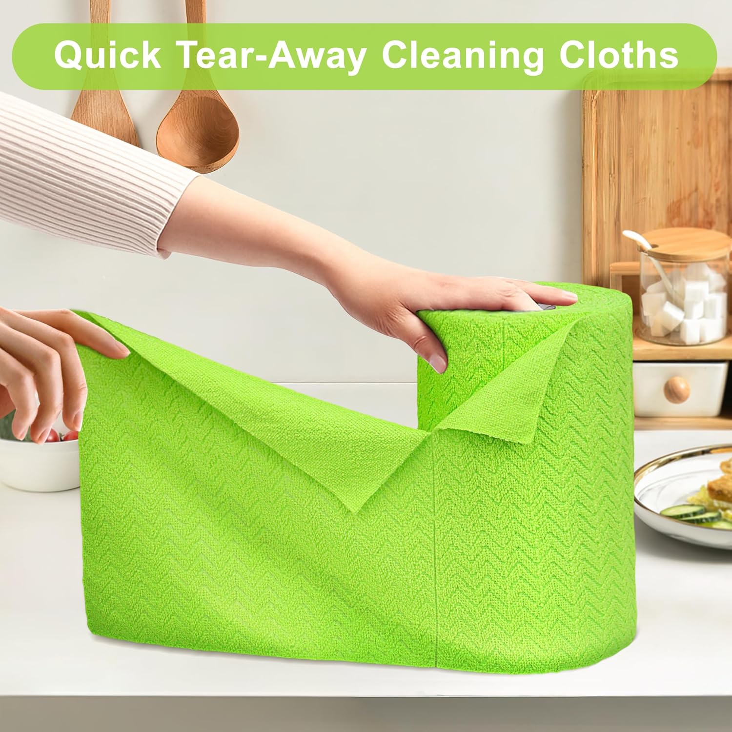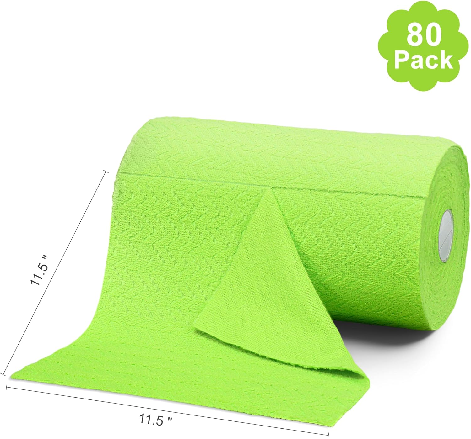 LIVOS Microfiber Cleaning Cloth Roll - 80 Pack, Reusable Paper Towels, Microfiber Towels for Cars, Super Absorbent Lint Free Cleaning Rags for House, Kitchen, Window-Wave Green, 11.5"x11.5"