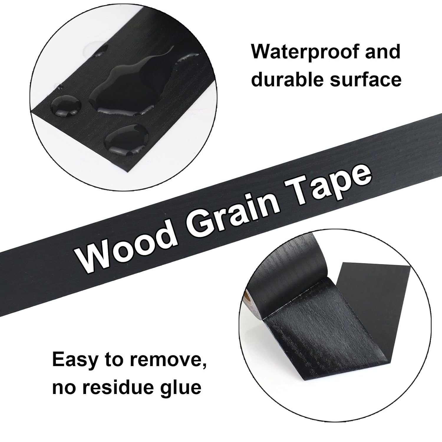 BOMEI PACK Wood Grain Repair Tape,Self Adhesive Repair Patch for Furniture, Floors, Cabinets, Windows, Doors, RV, Home Decor and DIY Projects (1, Black)