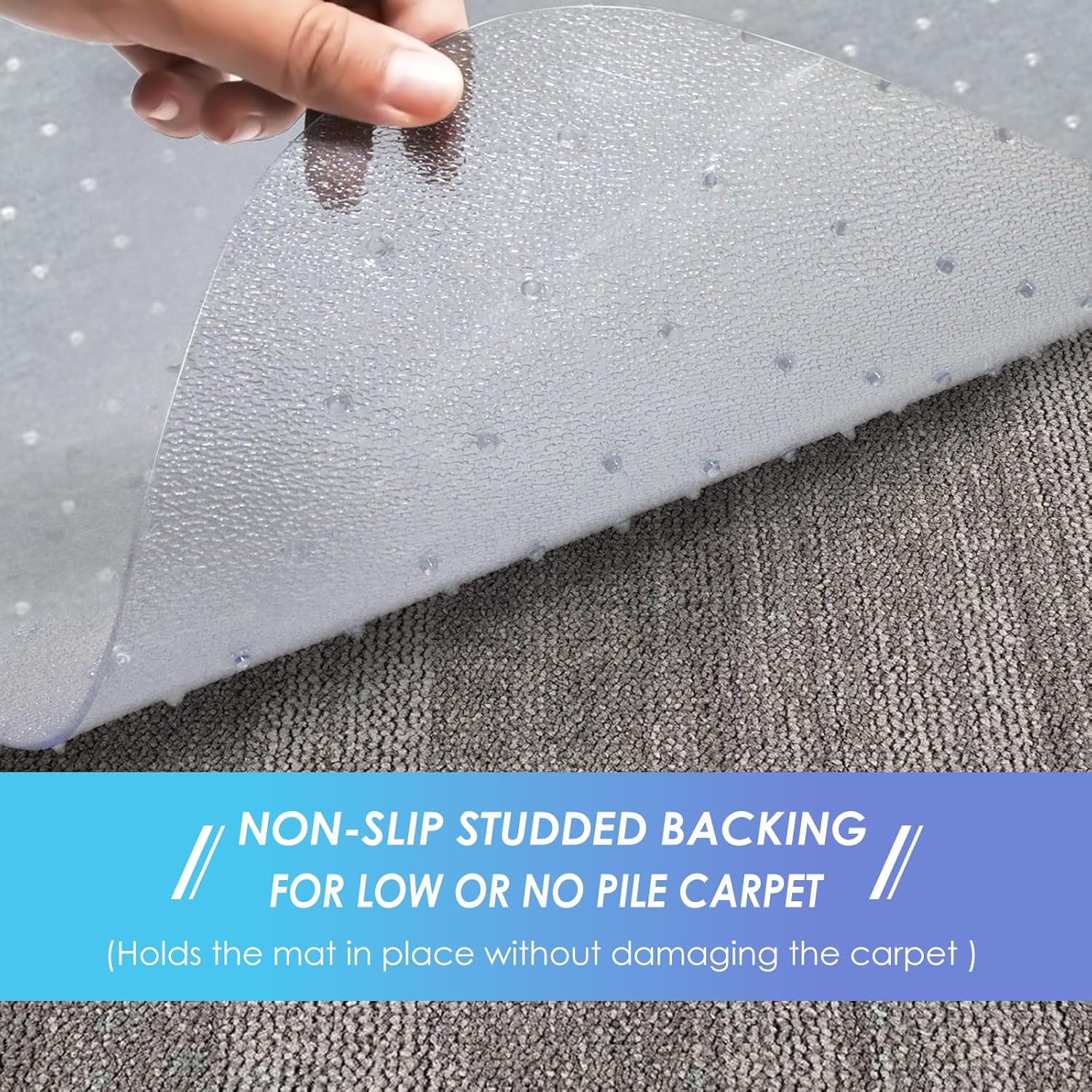 • Enough Grip For Low Pile Carpet:The nail of the back holds the floor mat for office chair firmly to the carpet and won't slide around. The office chair moves more easily during daily work and can help reduce the risk of leg fatigue.