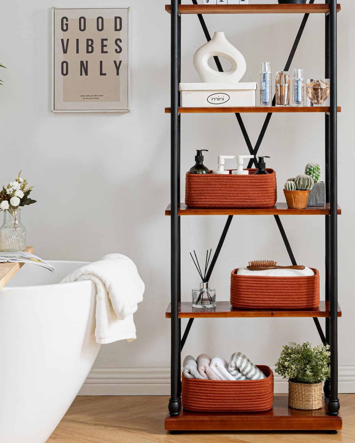 • [ Elegantly Designed to Match Any Décor ] Our small rope basket creates a minimalist appearance, and it adds a touch of warmth and texture to any room. The classic solid color design ensures seamless integration with your existing aesthetics, complementing any decoration. Perfect as decorative storage baskets for shelves, cabinets, and any open display space, making them a stylish and practical addition to any decor, enhancing the overall aesthetics of your room