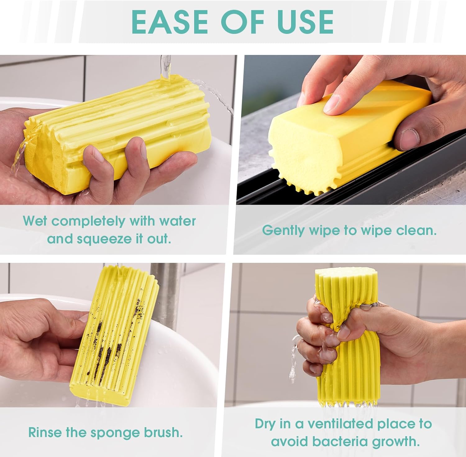 4 Pack Damp Dusting Sponge Duster, Yellow Dust Cleaning Sponge, Reusable Household Cleaning Sponge Tool for Blinds, floorboards, Fan Blades, Vents, Glass, Railings, Mirrors