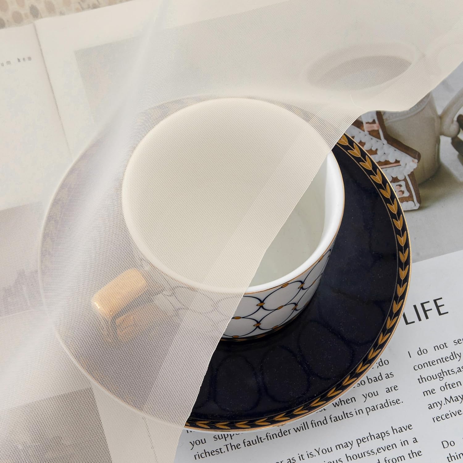 Chyhomenyc Cream Sheer Curtains 36 inch Length 2 Panels Set, Light Filtering Voile Short Window Curtians for Bathroom Living Room Farmhouse Small Windows, Each 42Wx36L in, 2PCS