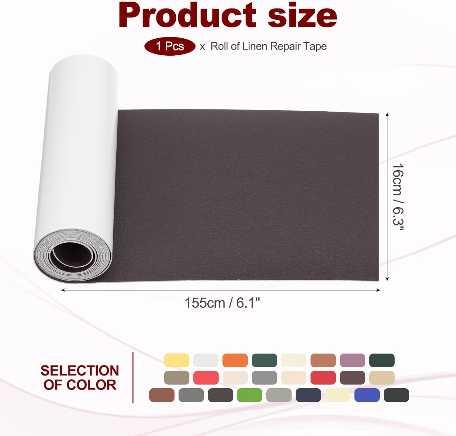 • Material: PVC Leather; Color: Deep Coffee; Size: 16 x 155 cm / 6.3 x 61 inch; Package Included: Leather Patches x 1 Roll