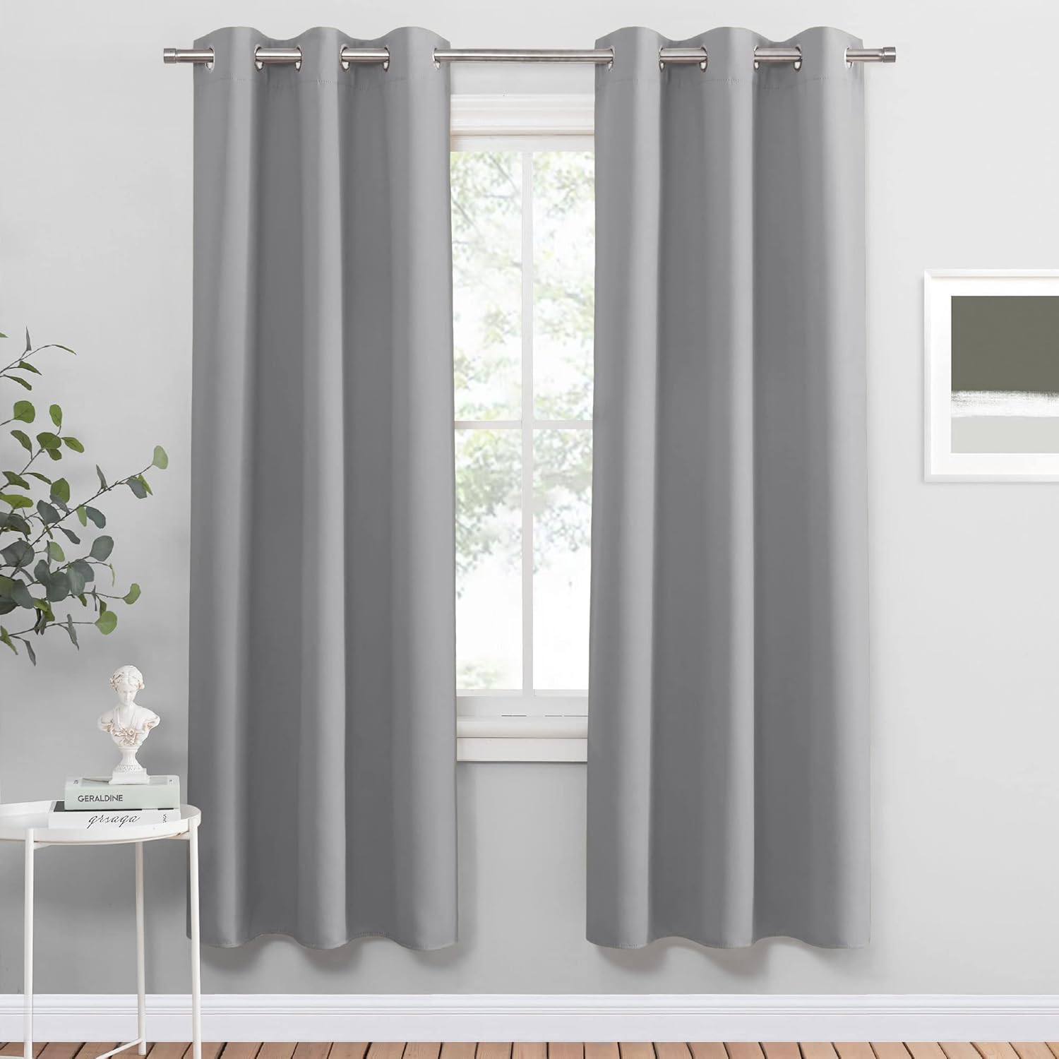 PONY DANCE Sliver Grey Blackout Curtains for Bedroom 63 Inch Length 2 Panels Set, Thermal Insulated Energy Saving Grommet Top Window Treatment Drapes for Living Room, W34 x L63 Inch