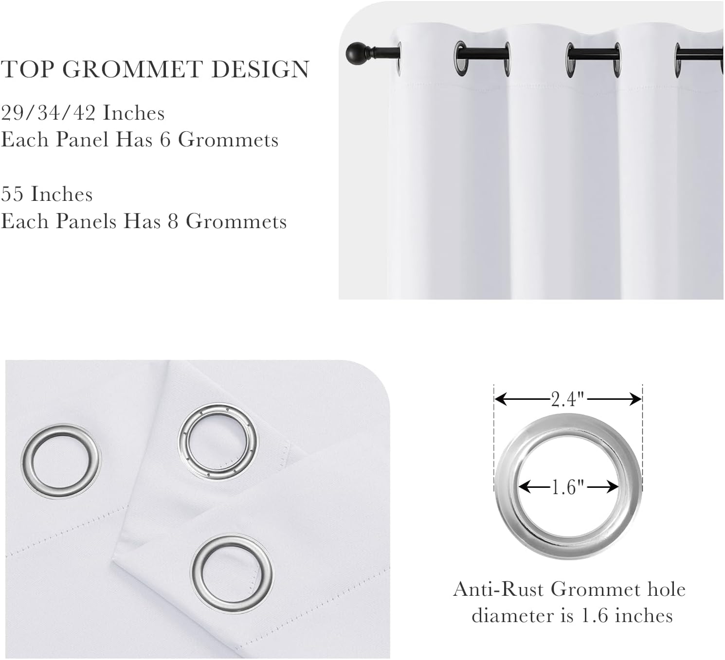 • READY MADE - 2 panels include, each measures W34" x L63", 6 silver grommets(1.6" inner diameter) fit most standard rods. For proper fullness, panels should measure 1.5-2.6 times the width of your window