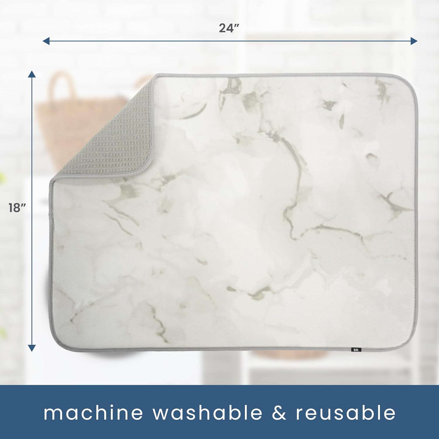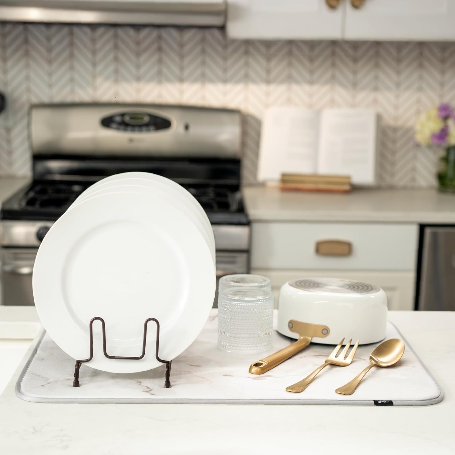 • Dish drying mats for kitchen counter are reusable, machine washable, and easy to store for kitchen organization; durable construction will not chip or break like a stone dish drying mat for kitchen