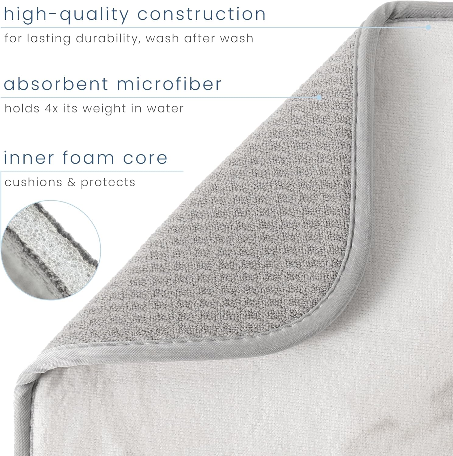 S&T INC. Dish Drying Mat, 16” x 18”, Absorbent Microfiber Kitchen Counter Mat, Dish Drying Pad for Dishes, Utensils, Pots and Pans, Large, Grey Stone