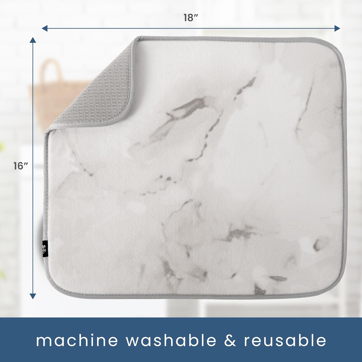 • Dish drying mats for kitchen counter are reusable, machine washable, and easy to store for kitchen organization; durable construction will not chip or break like a stone dish drying mat for kitchen
