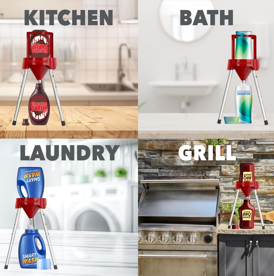 • MAXIMIZE PRODUCT USE: Designed to help you get every last drop from your health, beauty and personal care products. Lotions, shampoos, conditioners, oils, body washes, perfumes, and more—Freestand easily reduces waste and ensures you’re getting the most out of every bottle, saving you money, frustration, and extending the life of your favorite products.