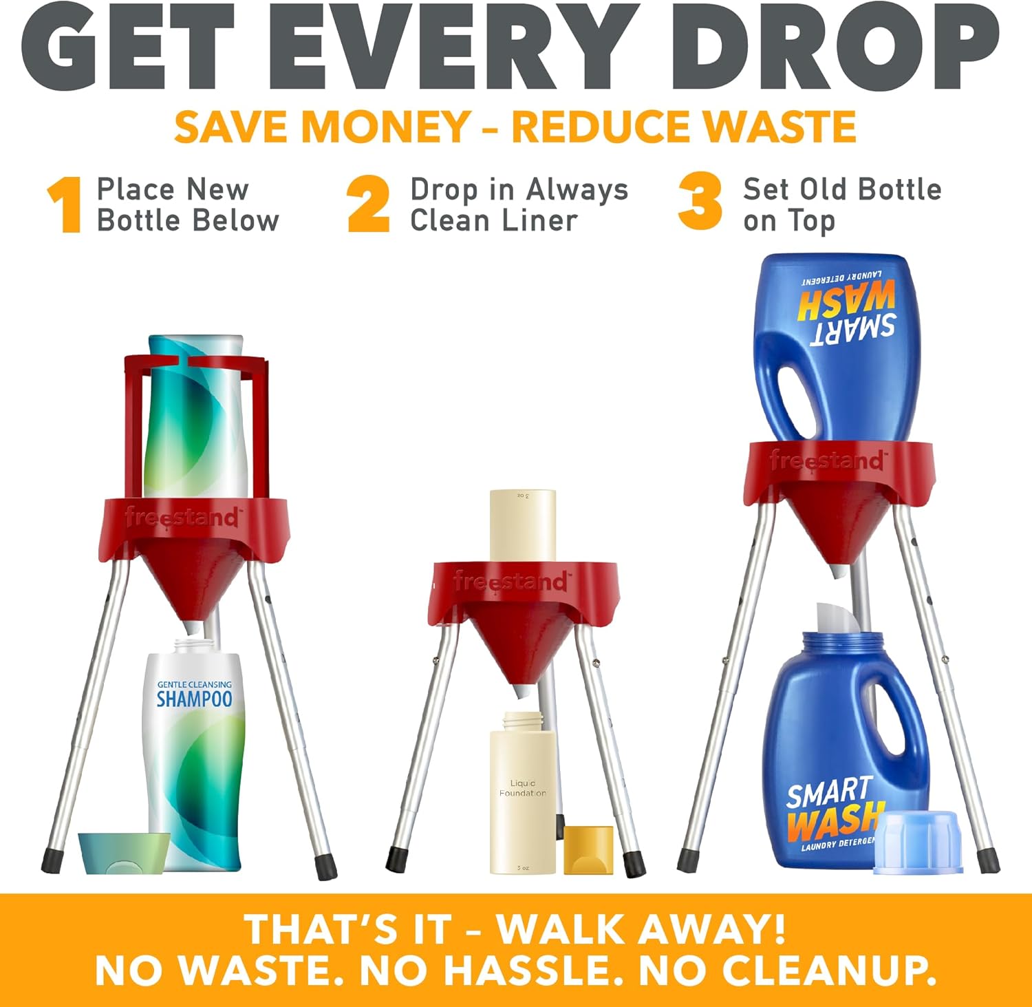 Freestand™ Bottle Emptying Kit – No More Wasted Product – Get Every Last Drop of Shampoo, Conditioner, Facial Cleansers, Moisturizers, Sunscreen, Body Wash, Perfume, Hair Serums, Serums, & More
