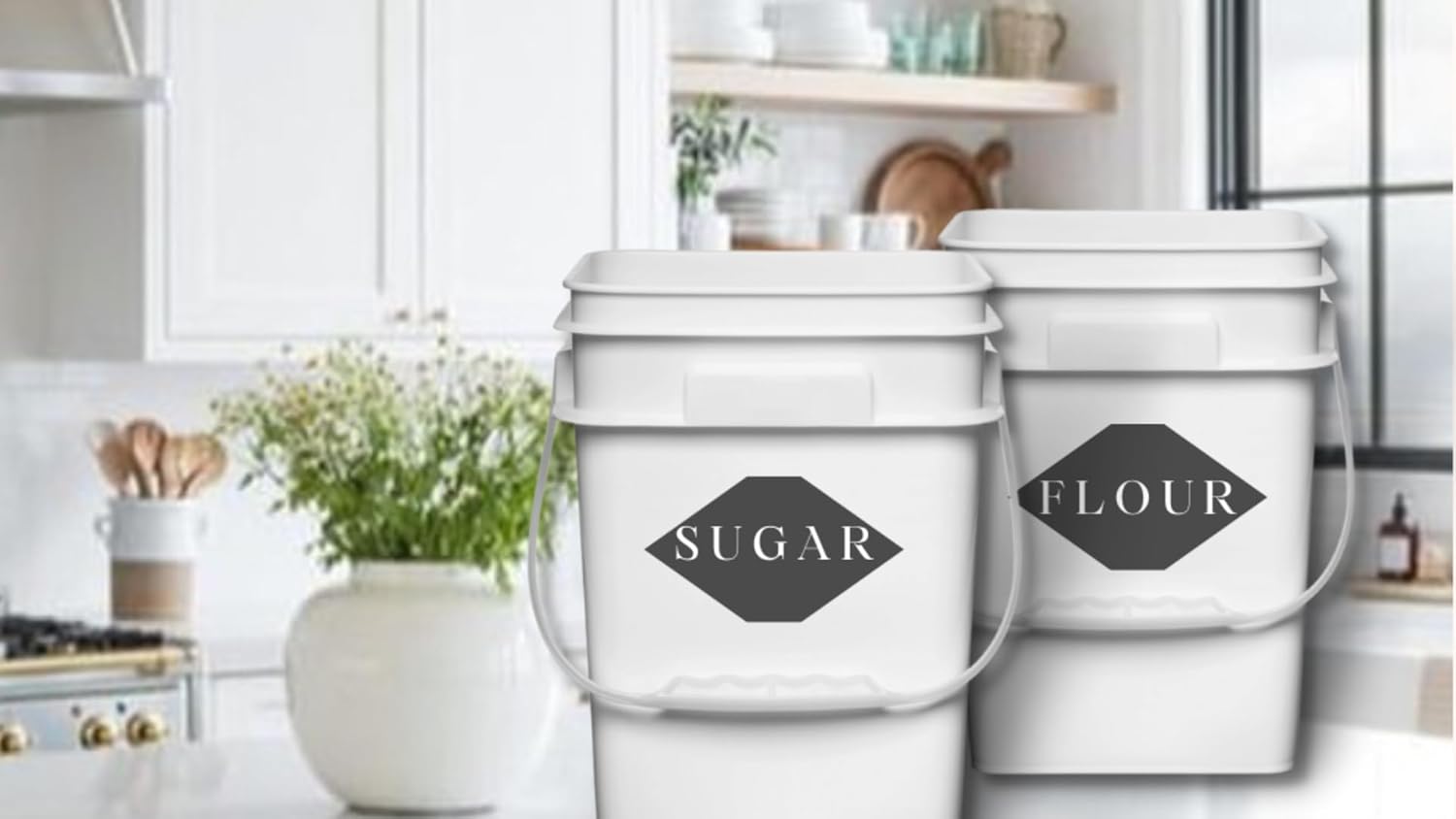 • Buckets good for storing dry food like beans, rice, flour, sugar, salt, pasta. Honey. Pet food. Livestock feed. Birdseed.
