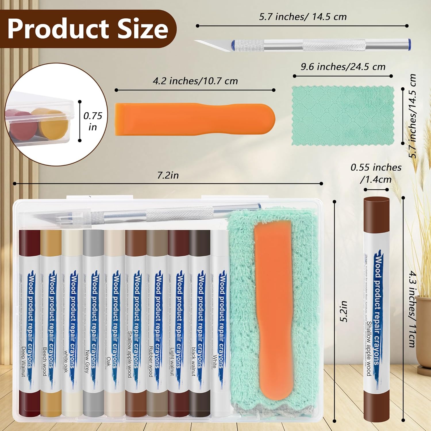 • 【 Effective Furniture Repair 】: This touch up wax stick allows you to match or mix colors to perfectly repair scratches, chips, and marks on wooden furniture, doors, cabinets, and more. Whether it's light oak, dark walnut, or white paint, this kit can meet your needs