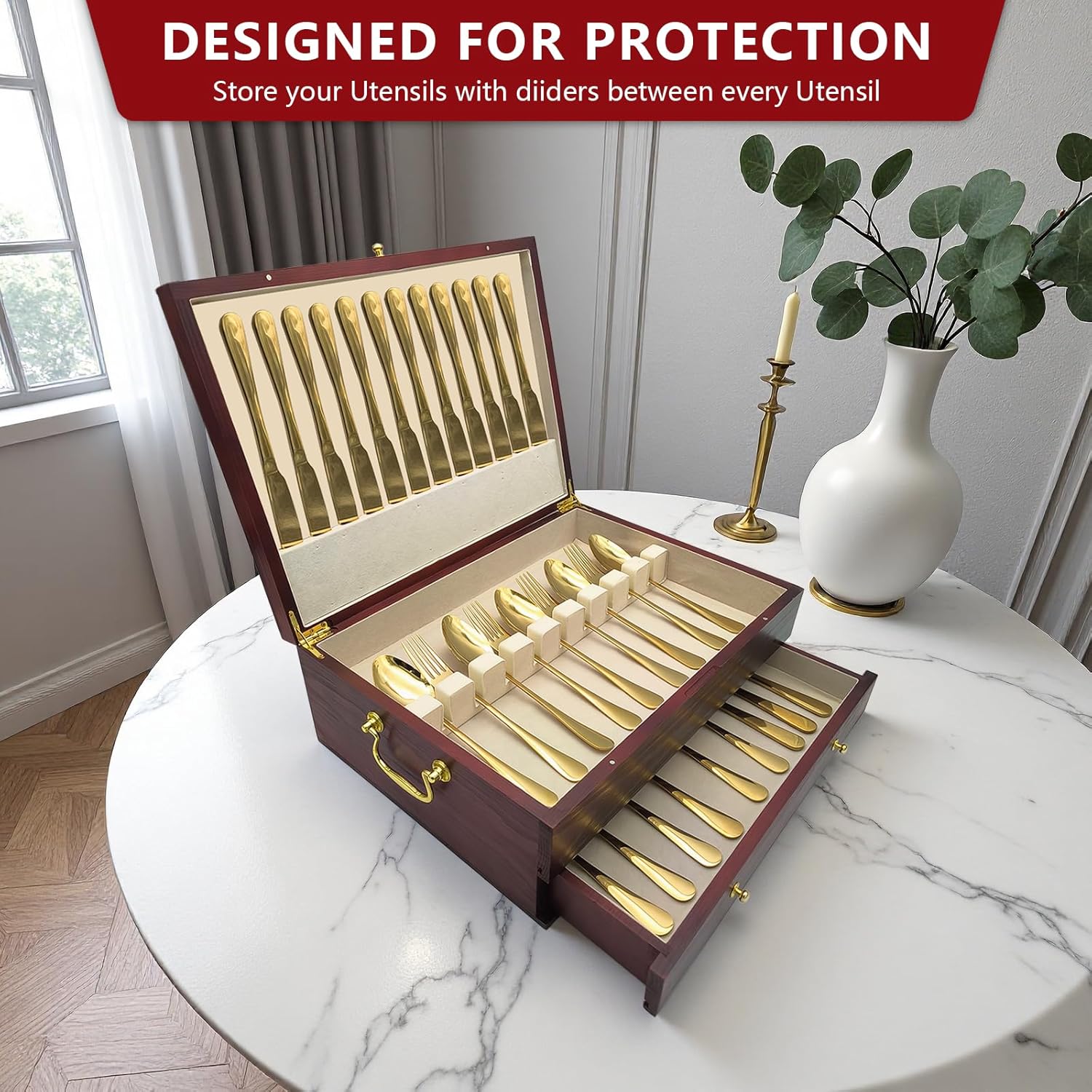 • Craftsmanship and Quality Materials: We take great pride in the craftsmanship of our silverware storage box. We emphasize the use of high-quality materials to ensure your silver pieces remain bright, shiny, and lustrous.