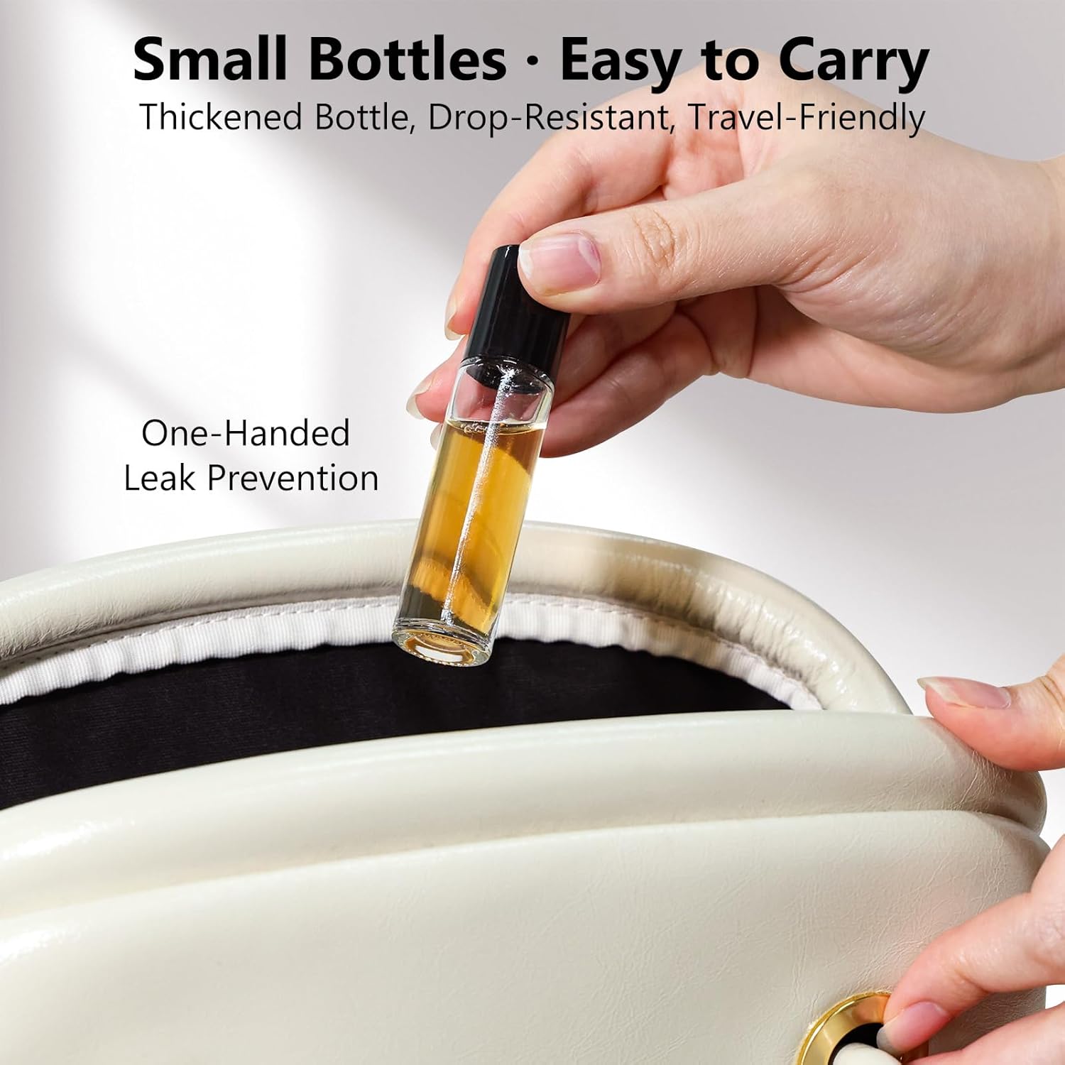• Leakproof Protection: These roller bottles for essential oils feature a screw-thread finish and a secure black plastic cap for reliable, leak-proof performance. The dual-cap design keeps your oils and perfumes safely sealed, preventing spills and leaks during travel or everyday use.