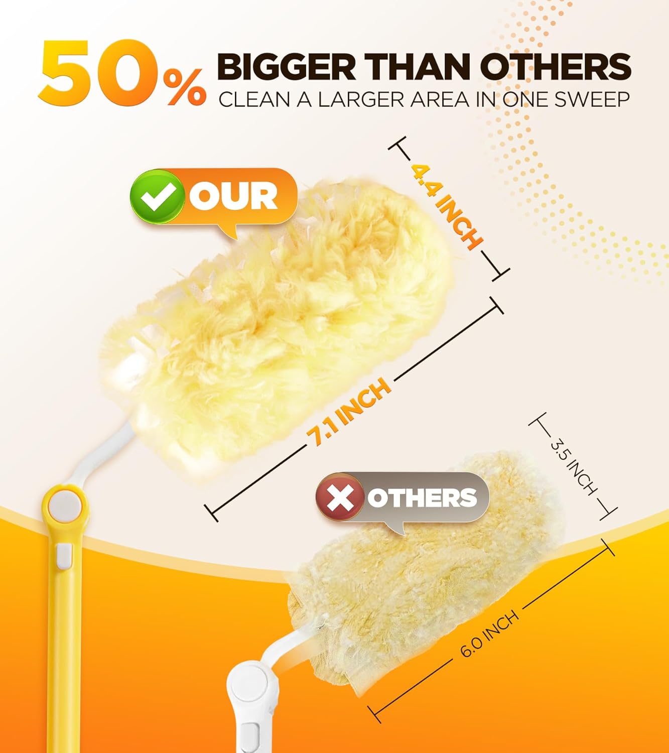 • 4X DUSTING POWER - Boasting 4X coated microfibers and larger size than the original, our dusters create more static to grab and hold more dust in a single sweep, eliminating the need for tedious, repeated cleaning. The 360° all-round coverage ensures every corner, edge, and crevice is thoroughly cleaned.