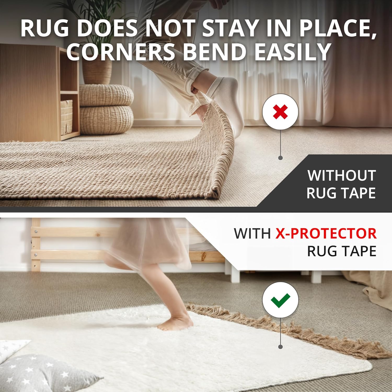 • ✌️ Are you fed up with sliding rugs or rug corners interfering when you’re walking? Forget about it! Keep your rugs in place and make flat corners with carpet tape for area rugs by X-Protector!