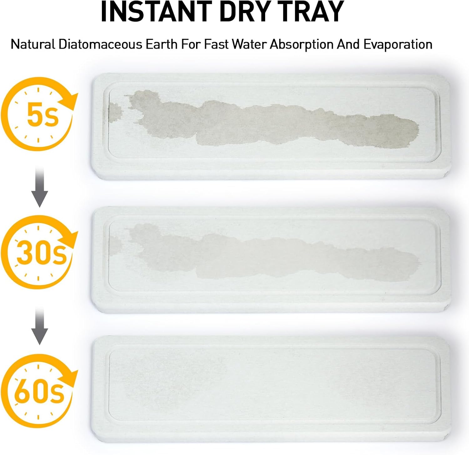 • 【QUICK DRY TRAY】Moforoco's soap dispenser set uses a new material, diatomaceous earth. Experiments have shown that diatomaceous earth has stronger water absorption, is environmentally friendly and safe, and has the characteristics of quick drying. It is very suitable for use around the sink and sink, so that the kitchen sink is always dry.