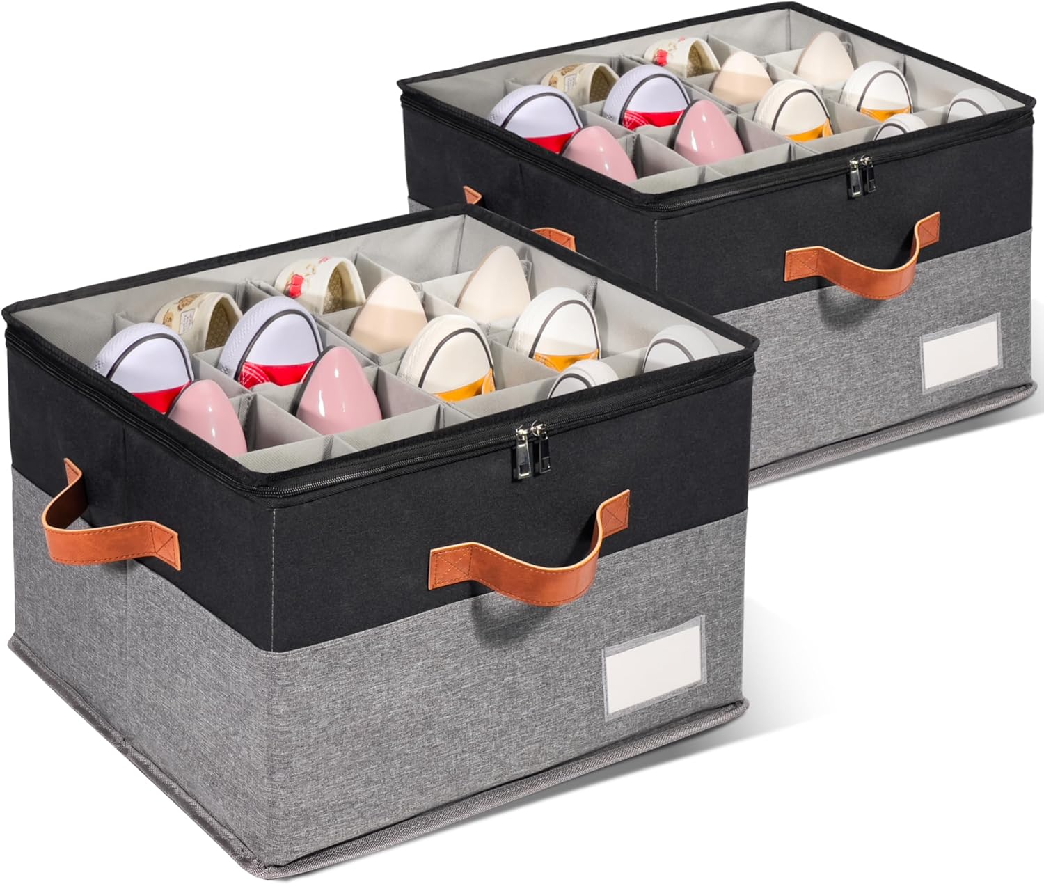 • Easy to Find - The shoe box has a clear dust cover on the surface and a label on the side that allows you to register your storage for easy identification and location. Dual zippers make opening/closing the shoebox very easy