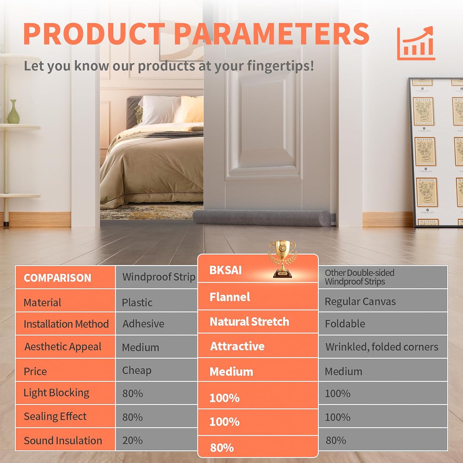 • 5-in-1 Under Door Draft Stopper for Ultimate Protection: Block light, cold drafts, heat loss, noise reduction, and 1nsect-proof door gap. maintain indoor temperature, silence, and pest-free comfort in all seasons.