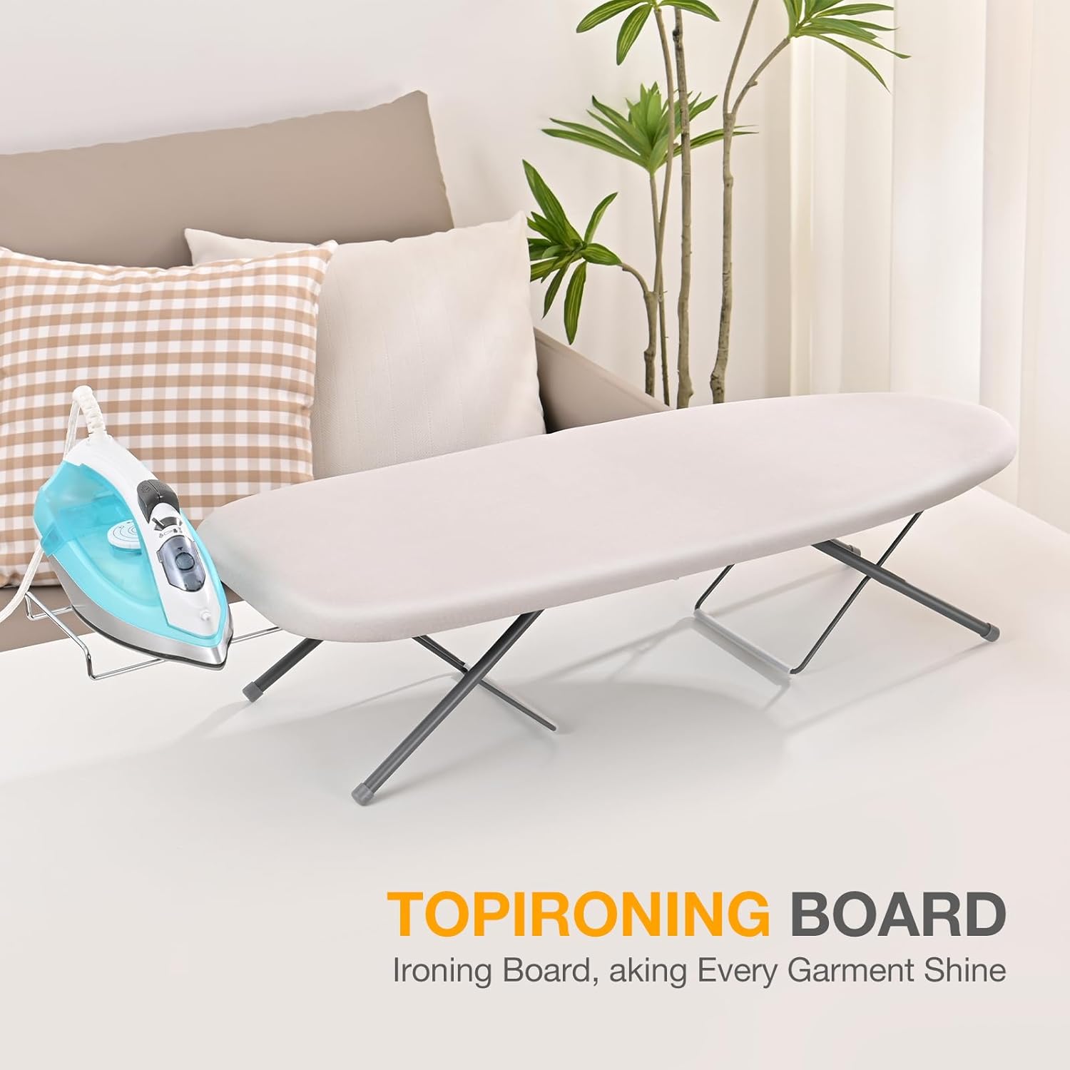 APEXCHASER Tabletop Ironing Board with Iron Rest, Small Iron Board, Extra Thick Cover, Portable Table top Ironing Board with Non-Slip Feet for Home Travel Use, Beige