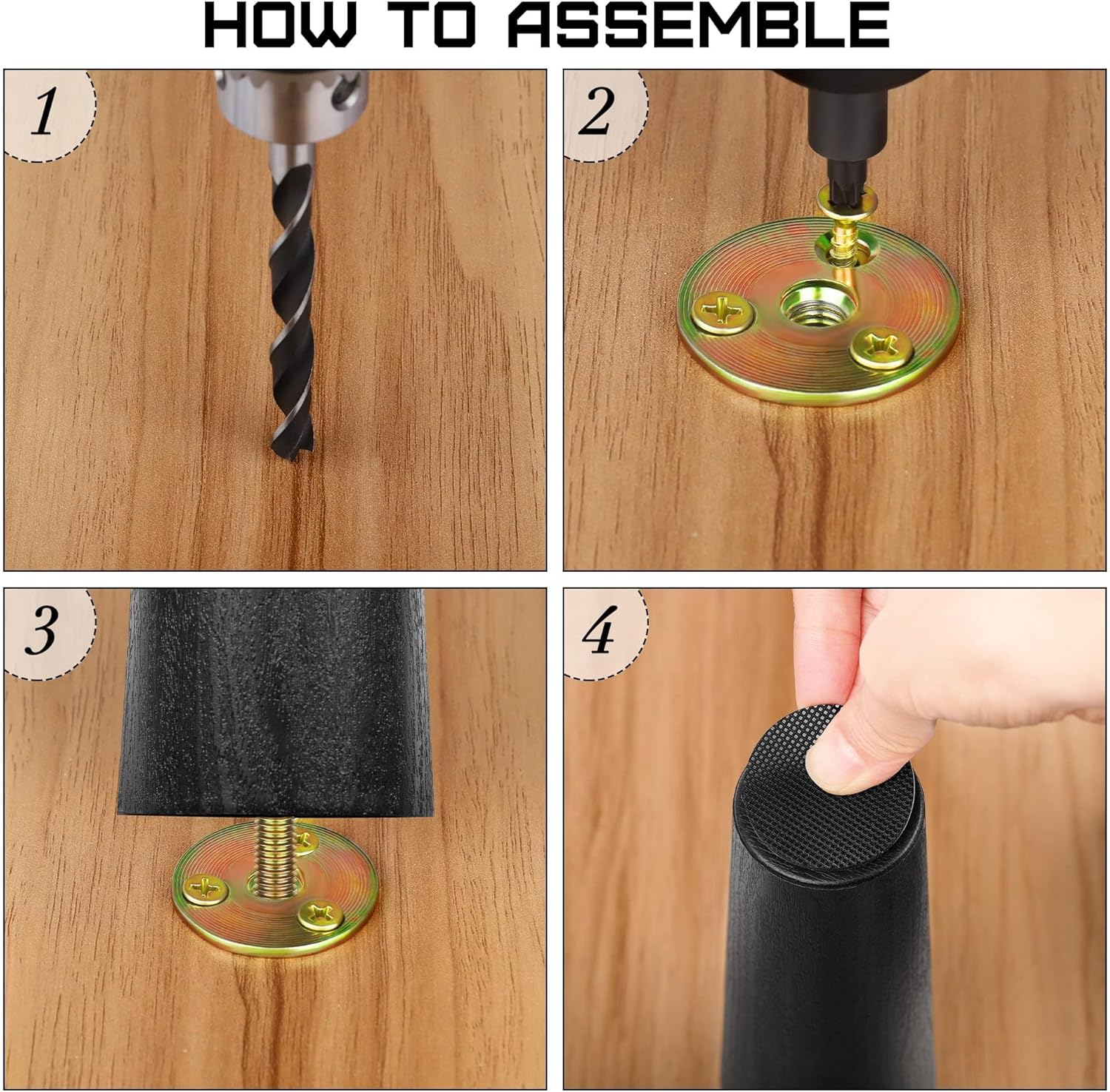 • Sufficient quantity: you will receive 16 packs of black sofa legs, 16 packs of M8 T-nuts, 48 pieces of metal screws, and 16 pieces of anti-skid pads; all accessories are complete for easy installation (Note: the maximum load-bearing capacity of the 4 furniture legs is 250 kg)