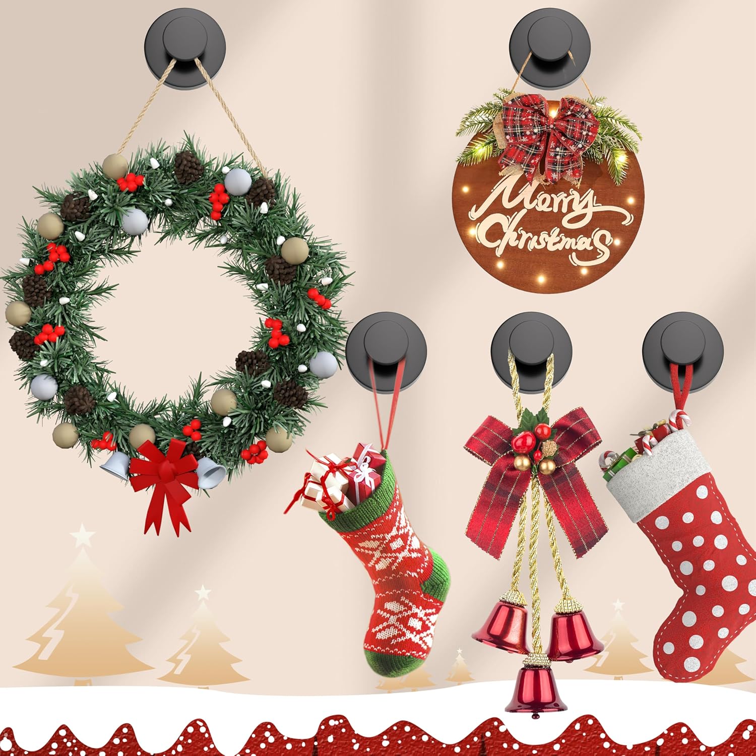 • 【Hangs Securely on 10+ Materials】The suction cup hooks are suitable for bathrooms,kitchens,windows,suction cup wreath hanger.heavy duty suction cups for glass.it can be fixed to fit tile, glass, mirror, marble, metal,acrylic,plastic,stainless steel,quartz,laminate and other smooth wall surfaces.,it can hang towels, loofahs, bathrobes,garland wreath and other items up to 15 lbs