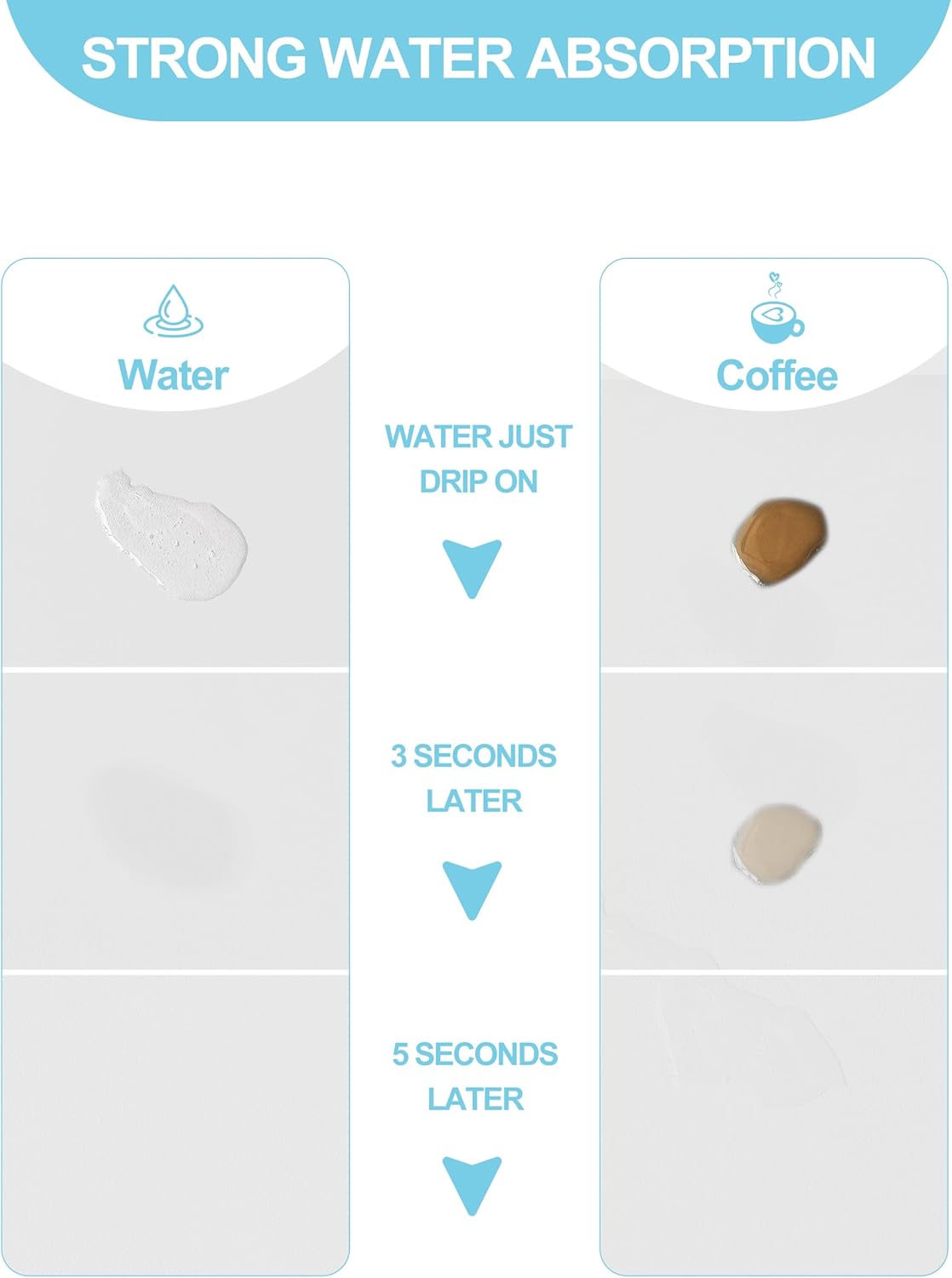 • Super Absorbent: Dish Drying Pad is made of super absorbent nano, the drying pad is soft and highly absorbent, which can dry quickly. In addition, the drying mat is thick enough to better protect countertops, tableware, and glassware from damage and contamination.