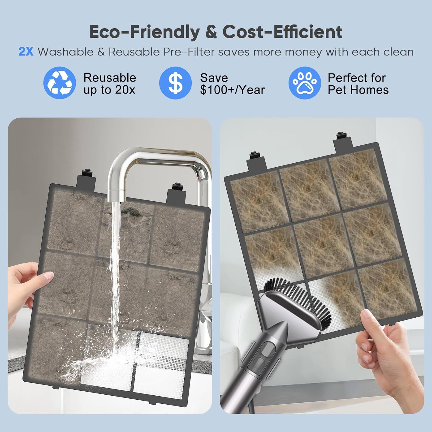 • 【PROLONG FILTER LIFE AND LOWER REPLACEMENT COSTS】First Line of Defense: The removable and washable fine-mesh pre-filter effectively captures pet hair, dander, fibers, and larger debris, significantly reducing the frequency of replacing the True HEPA14 filter. Simple Cleaning: Just wash or vacuum the pre-filter to save over $30 per cleaning and prolong the life of your main filter.Healthy Home: DAYETTE air purifier ensures fresh, clean air while keeping your filter replacement costs low