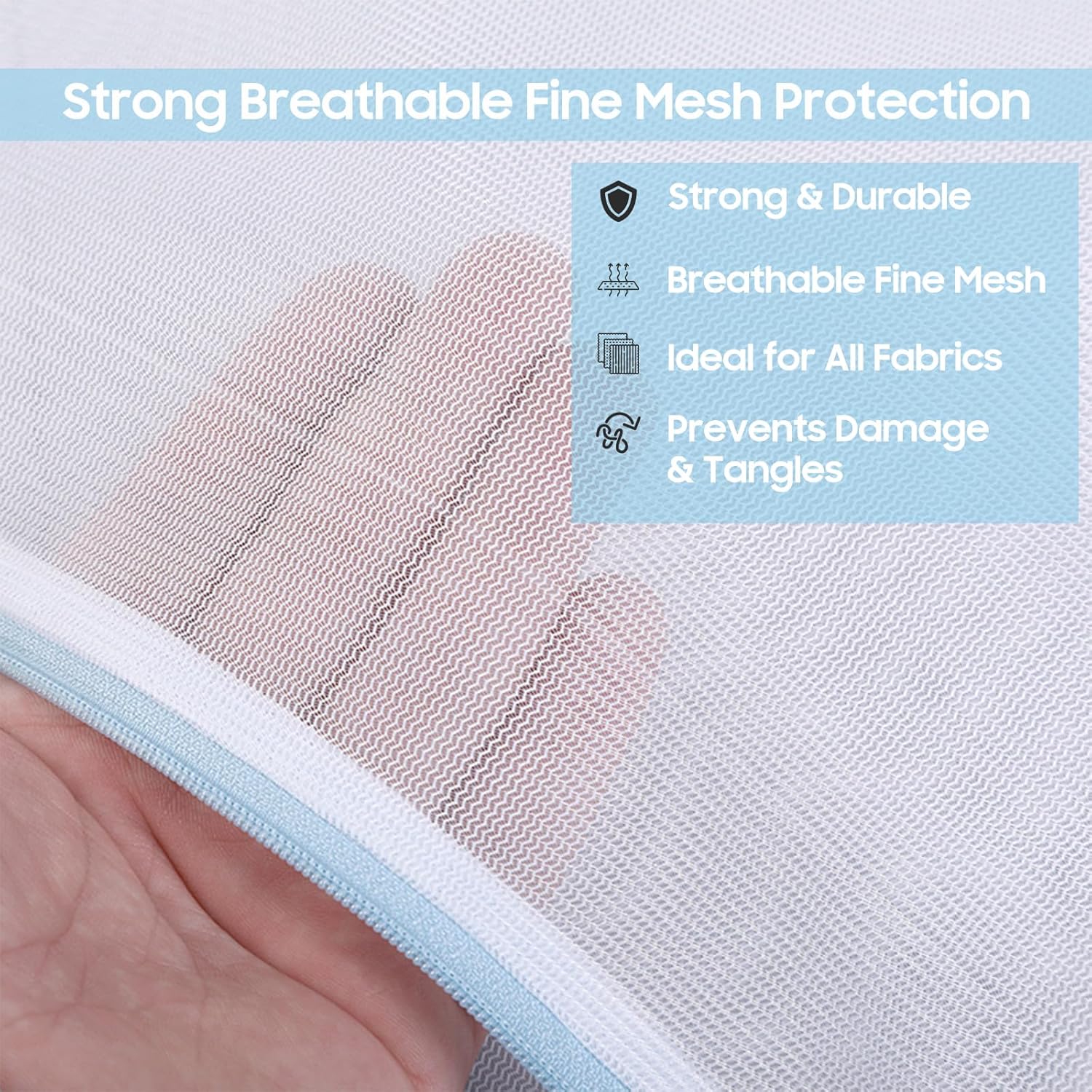 • Two Spacious Sizes for All Laundry Needs: Available in 20x24 inches and 24x24 inches, our large mesh laundry bag easily fits blankets, pillows, and other oversized items, making it ideal for handling large loads in your washing machine without hassle.