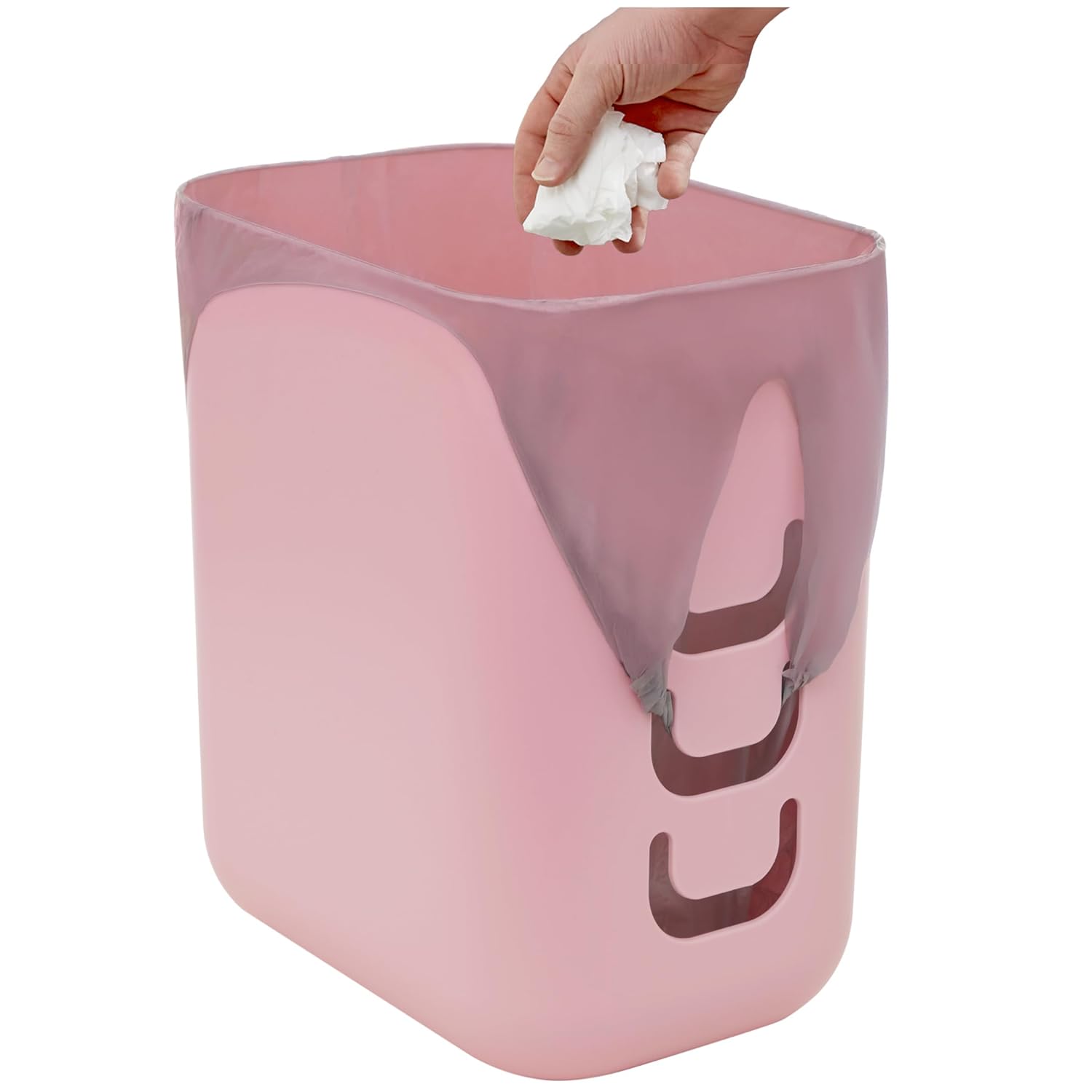 STORi Luup Bathroom Wastebasket, Secure Grocery Bags, Plastic Garbage Container for Vanity, Laundry Room, Kitchen, Office, 2.5 Gallon, Pink, Made in USA