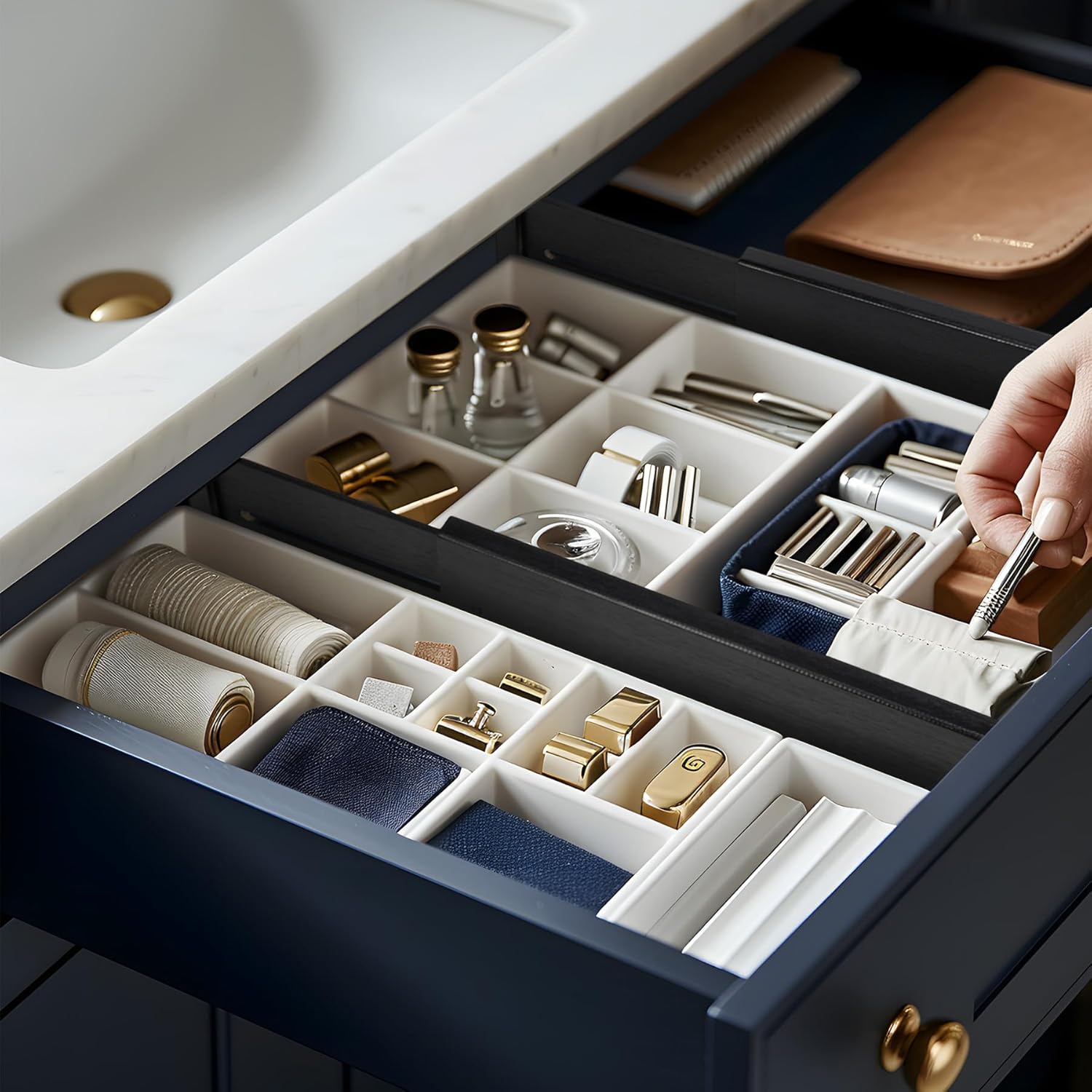 • Easy Installation & Removal: The expandable drawer divider features a built-in spring that keeps it securely in place. It's easy to adjust, so you can customize it to fit your changing needs. Ideal for sturdy drawers, ensuring your items stay organized