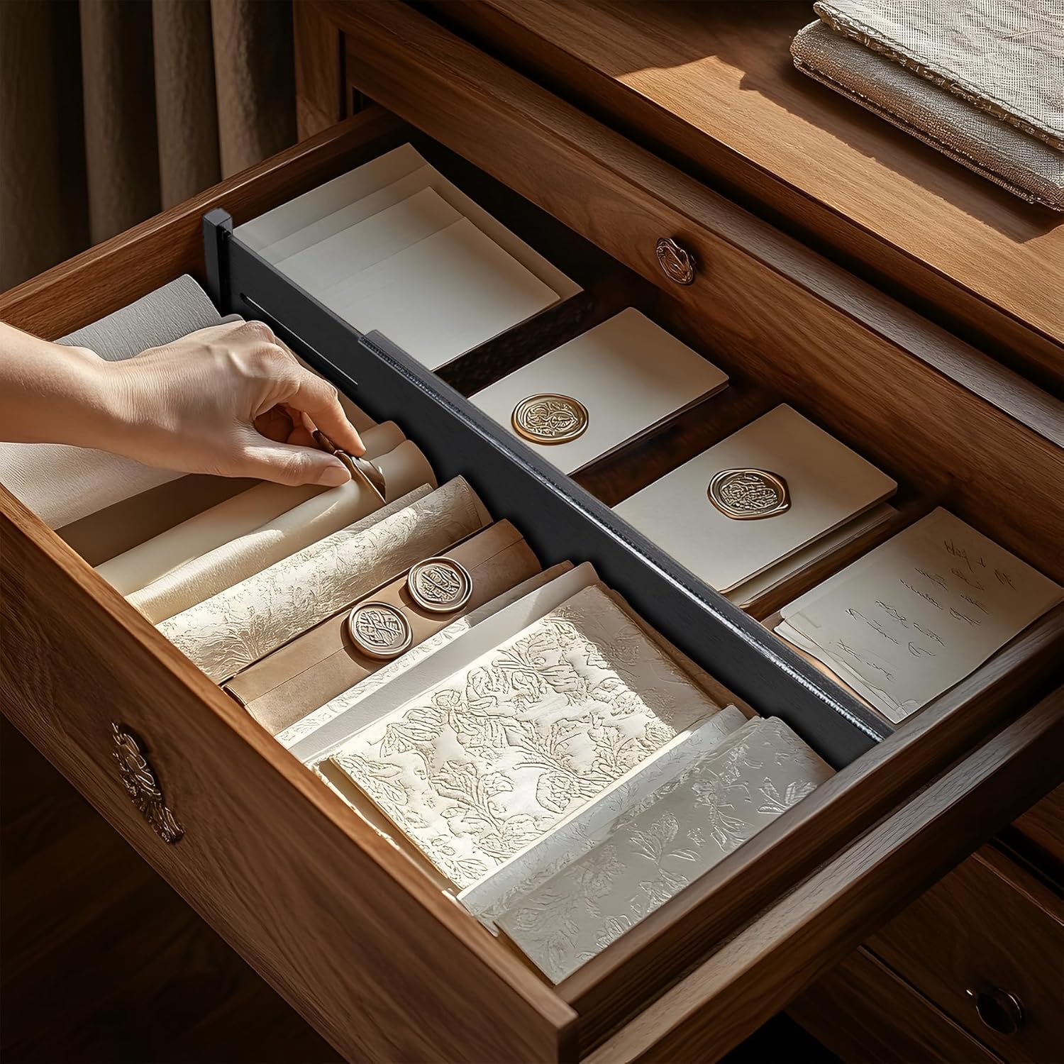 • Easy Installation & Removal: The expandable drawer divider features a built-in spring that keeps it securely in place. It's easy to adjust, so you can customize it to fit your changing needs. Ideal for sturdy drawers, ensuring your items stay organized