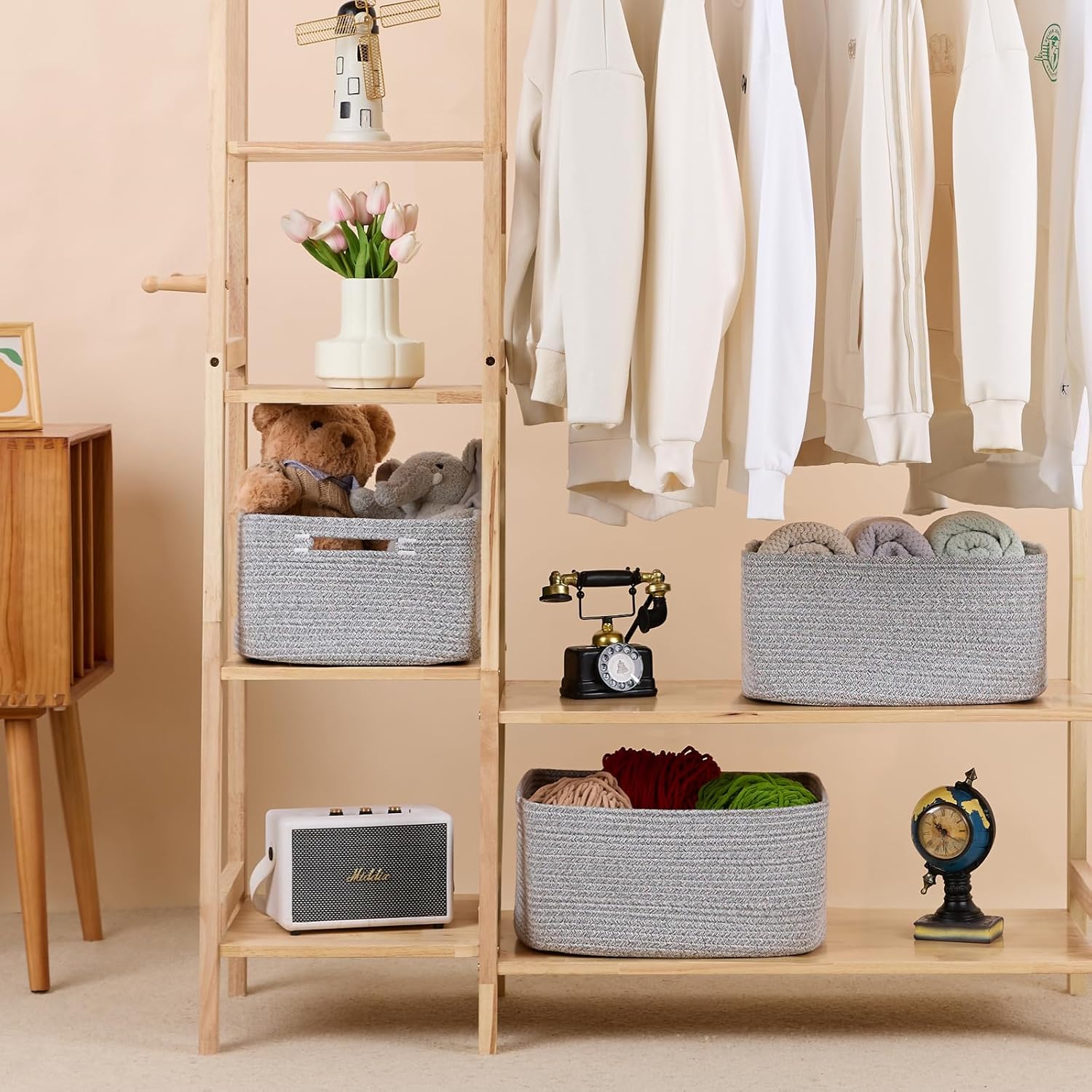 • [ Stylish Design ]: With a modern minimalist design, our woven rope baskets are a chic alternative to traditional rattan. They’re perfect for closets, changing table organizer, and cube shelves, adding warmth and texture to any room while tackling home clutter