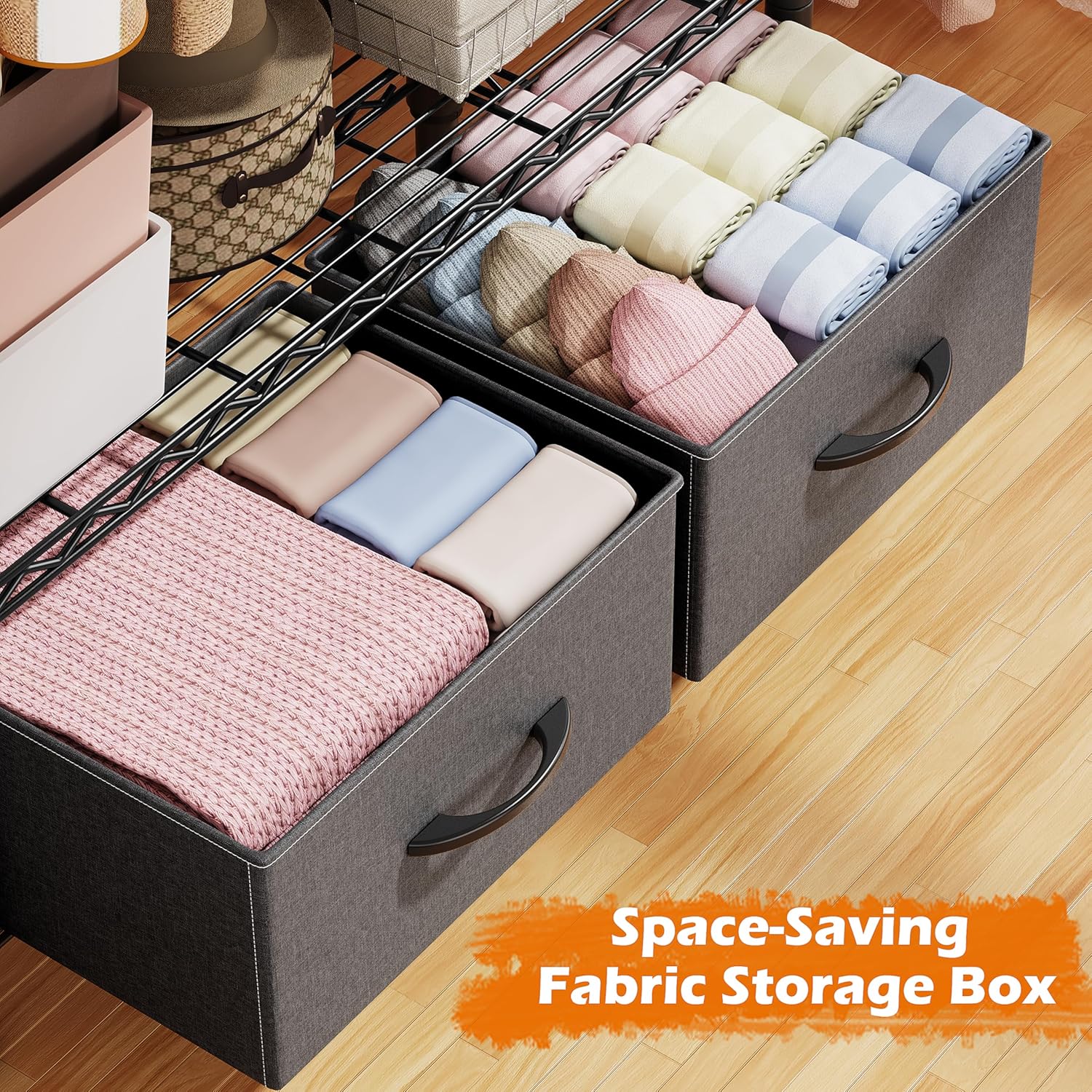 • Garment Rack with 2 Fabric Drawers:The drawers are equipped with easy-pull handles for smooth operation; designed for organizing underwear, socks, wallets and other small personal items, hidden storage and visual refreshment. Easily integrated into the closet, making storage more efficient and space more organized.