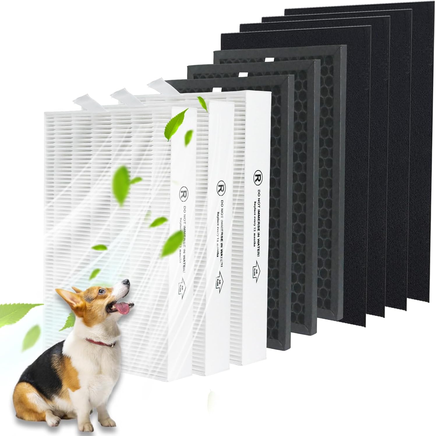 • Complete Value Packaging:Includes 3 True HEPA Filters, 3 Enhanced Filters (HRFSC1), and 4 Carbon Pre-Filters. Dimensions: HEPA (10.2”x6.5”x1.6”), Prefilter (14.2”x17.3”x0.2”). Perfect for long-term use, reducing frequent repurchase hassles.