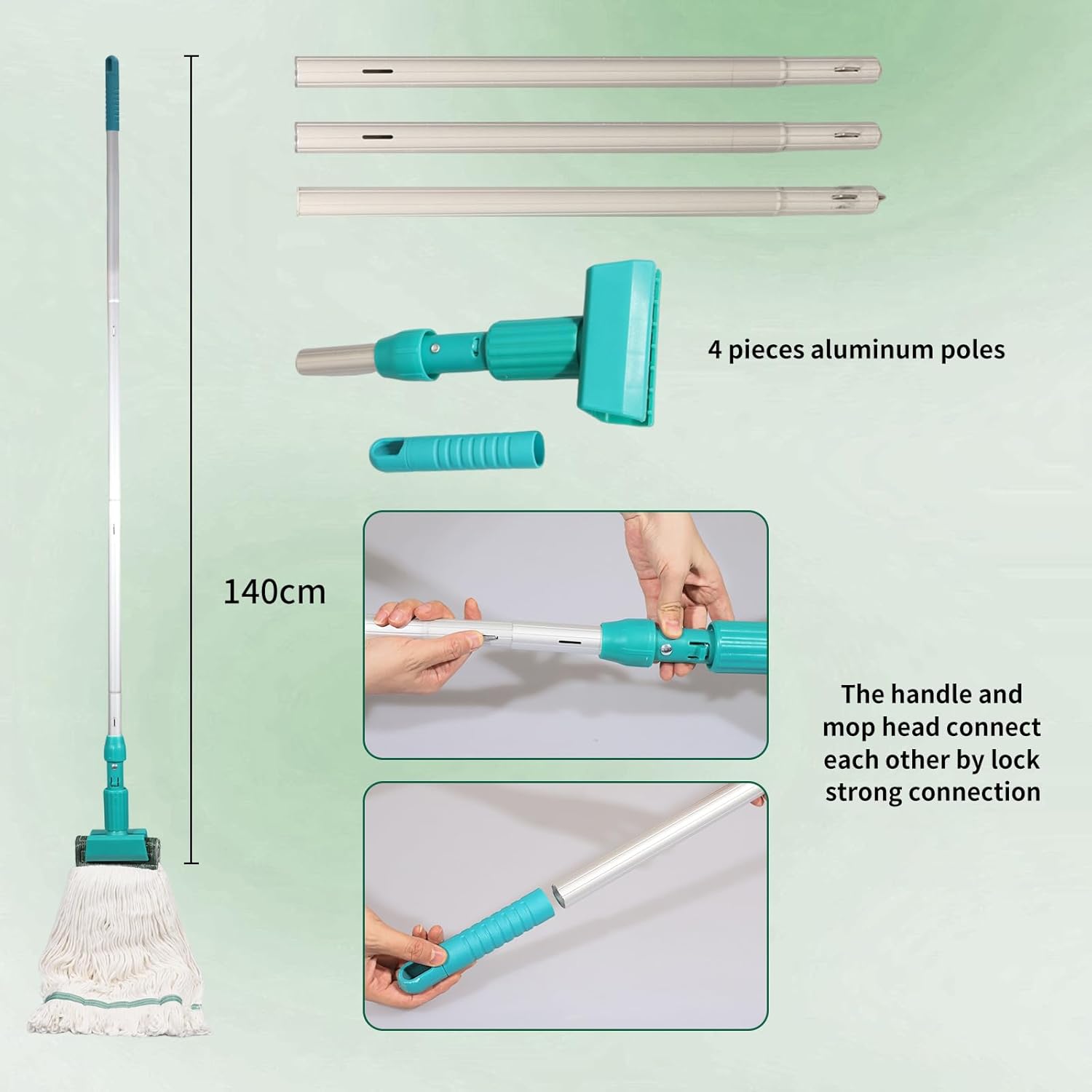 • Material : Bucket PP Bucket +Metal Handle, Mop handle : 4 pieces Aluminum poles, Mop head 50% cotton+50% fiber