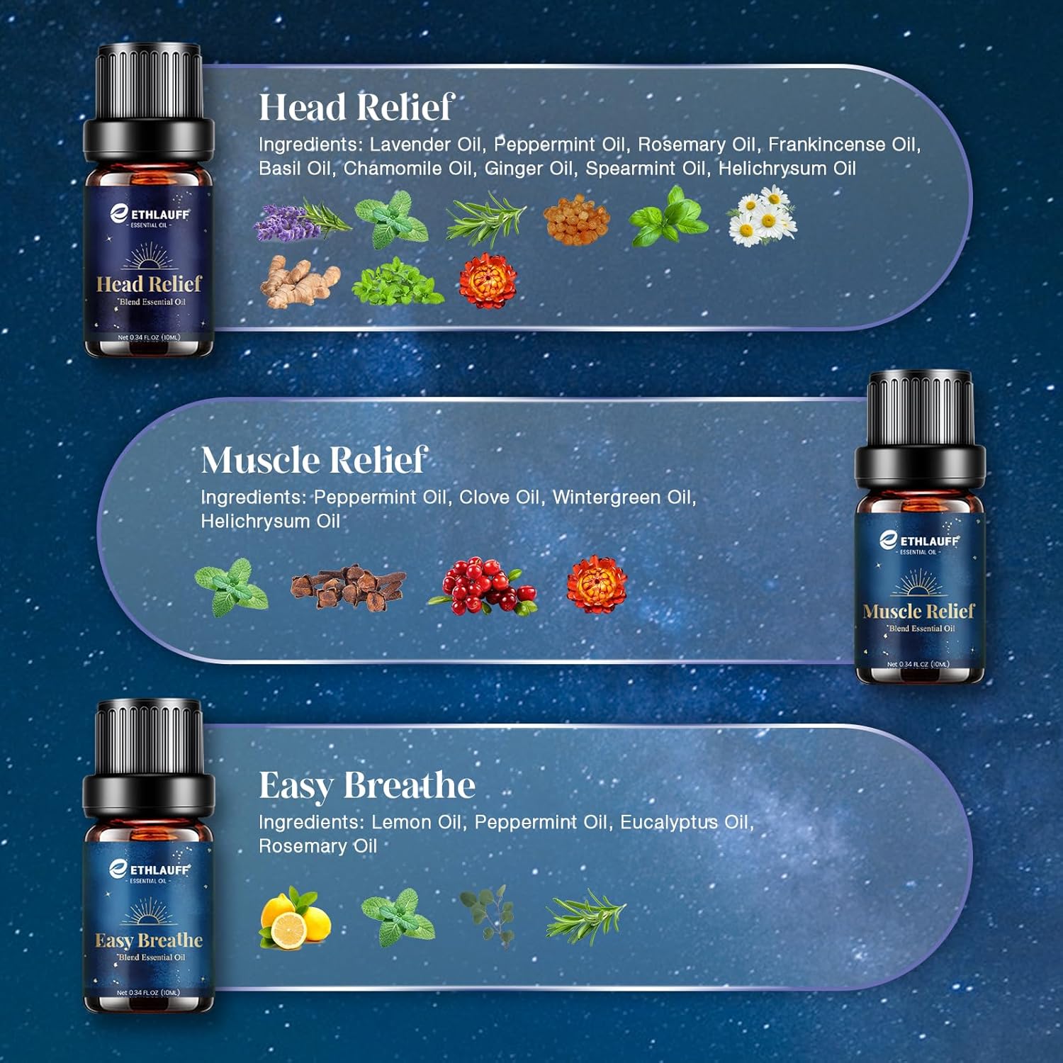 Essential Oil Blends, Essential Oils for Diffusers for Home, Relax Fragrance Oils Kit- Stress Relief, Sweet Dreams, Head Relief, Relax, Immunity for Aromatherapy, Humidifiers, Massage, 6x10ml