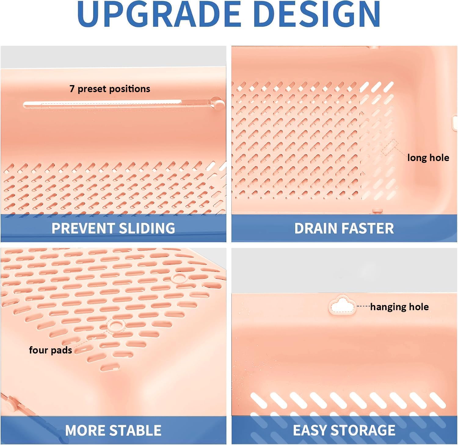 • LASSHSWA upgrade the colander, 7 preset positions - PREVENT SLIDING, long hole - DRAIN FASTER, four pads - MORE STABLE, hanging hole - EASY STORAGE.
