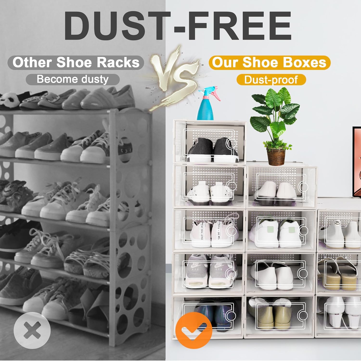 • Shoe Organizer Solutions: More dustproof than shoe racks, ventilated and breathable than shoe cabinets