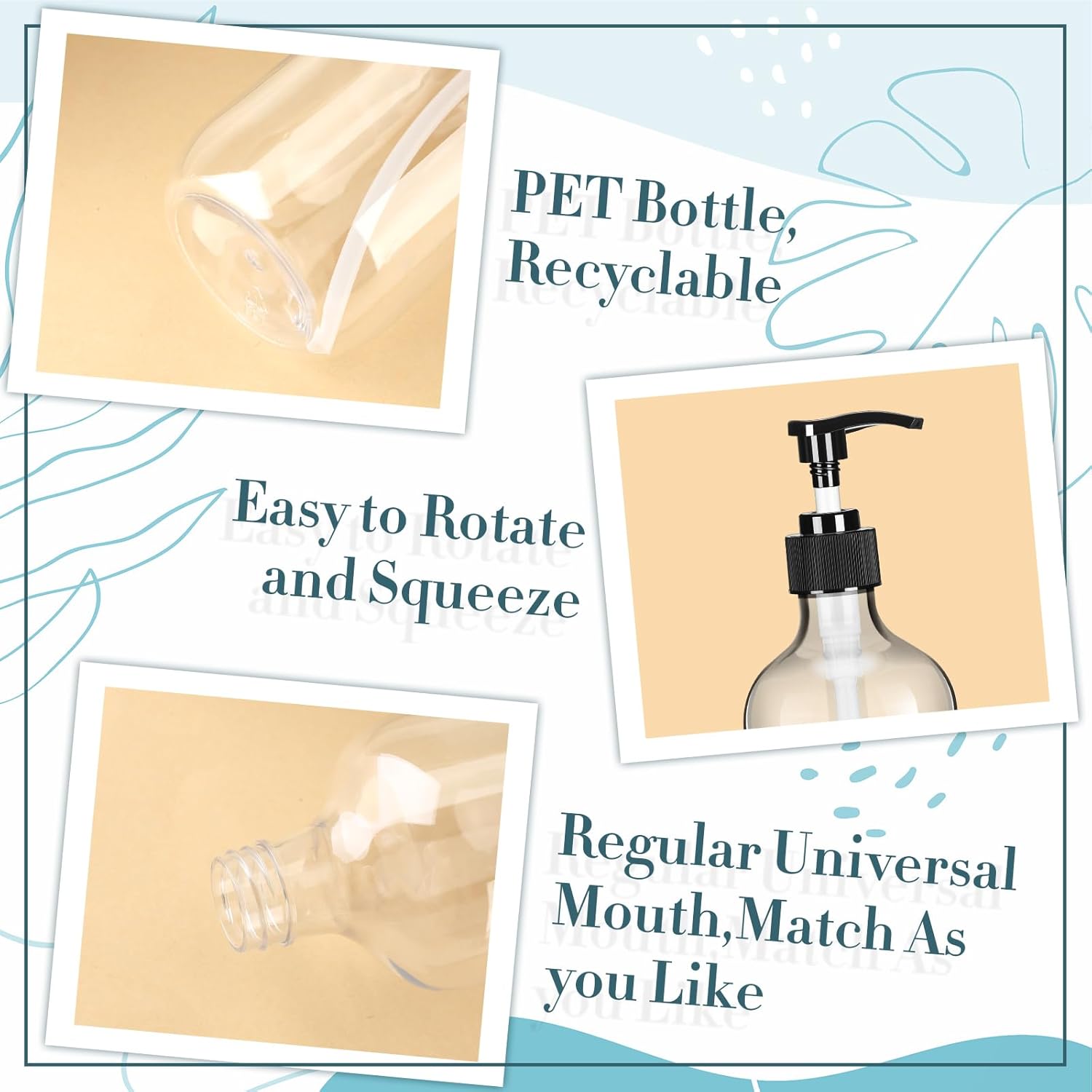 • Value Set: the package includes 12 pieces of the plastic pump bottles in clear color, sufficient quantity can satisfy your daily use, replacing and sharing needs, and the elegant color and design can blend with many styles of home decorations, such as farmhouse style, modern style, boho style and so on