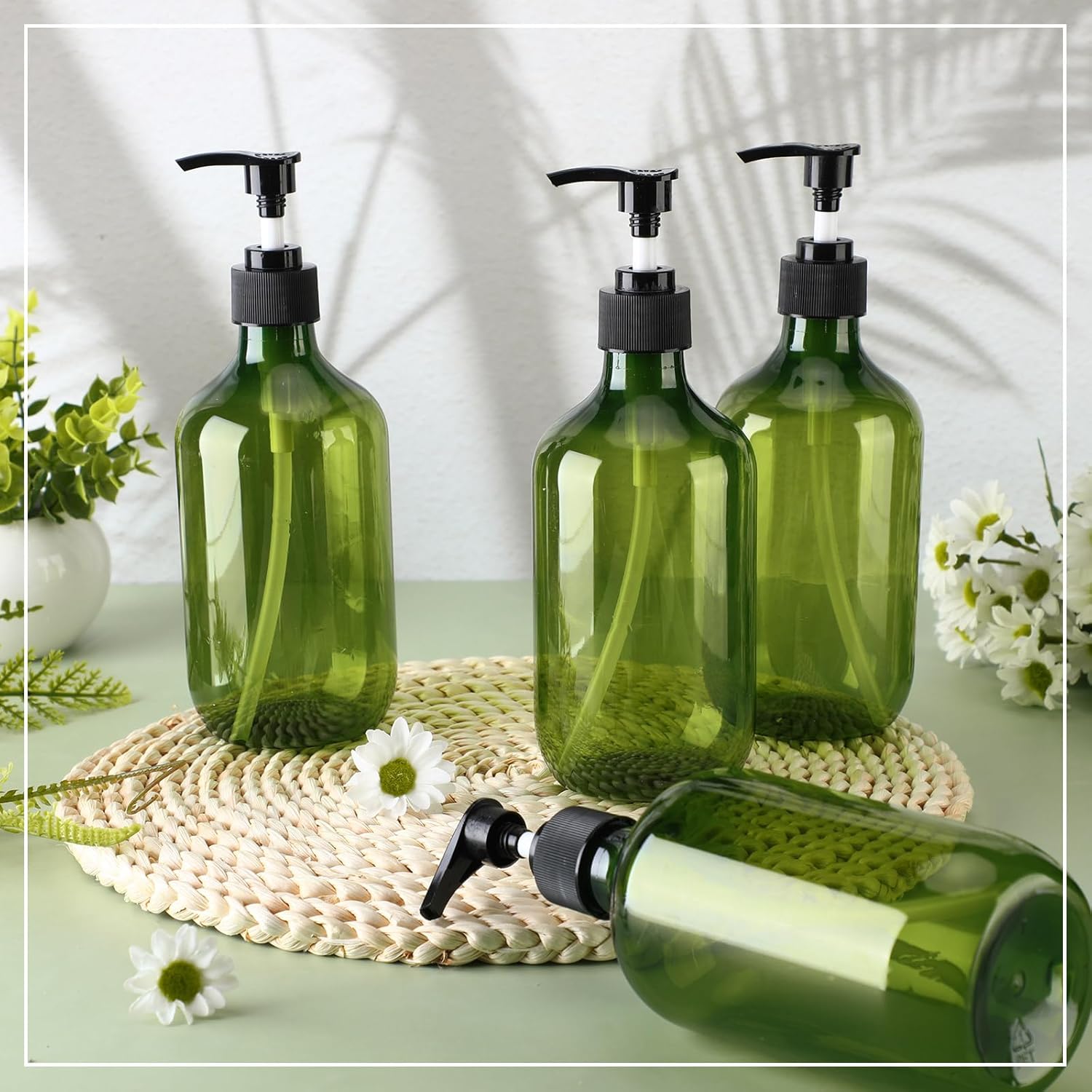 • Value Set: the package includes 12 pieces of the plastic pump bottles in green color, sufficient quantity can satisfy your daily use, replacing and sharing needs, and the elegant color and design can blend with many styles of home decorations, such as farmhouse style, modern style, boho style and so on