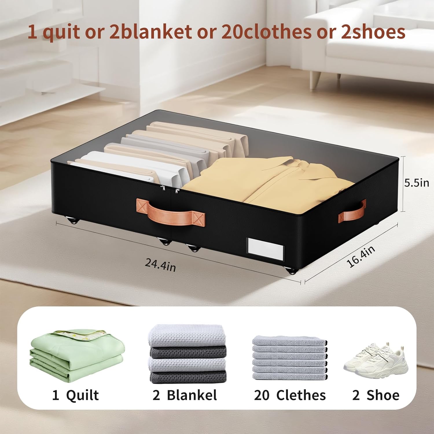 • [Multifunctional Storage Solution]: Our underbed storage box offers versatility for various storage needs. Secured with Velcro, the bottom frame and storage box can be utilized in different places, including closets, cloakrooms, bedrooms, baby rooms, under cribs, and dorms. It's perfect for storing seasonal clothes and everyday items. When not in use, simply fold them up to save space.