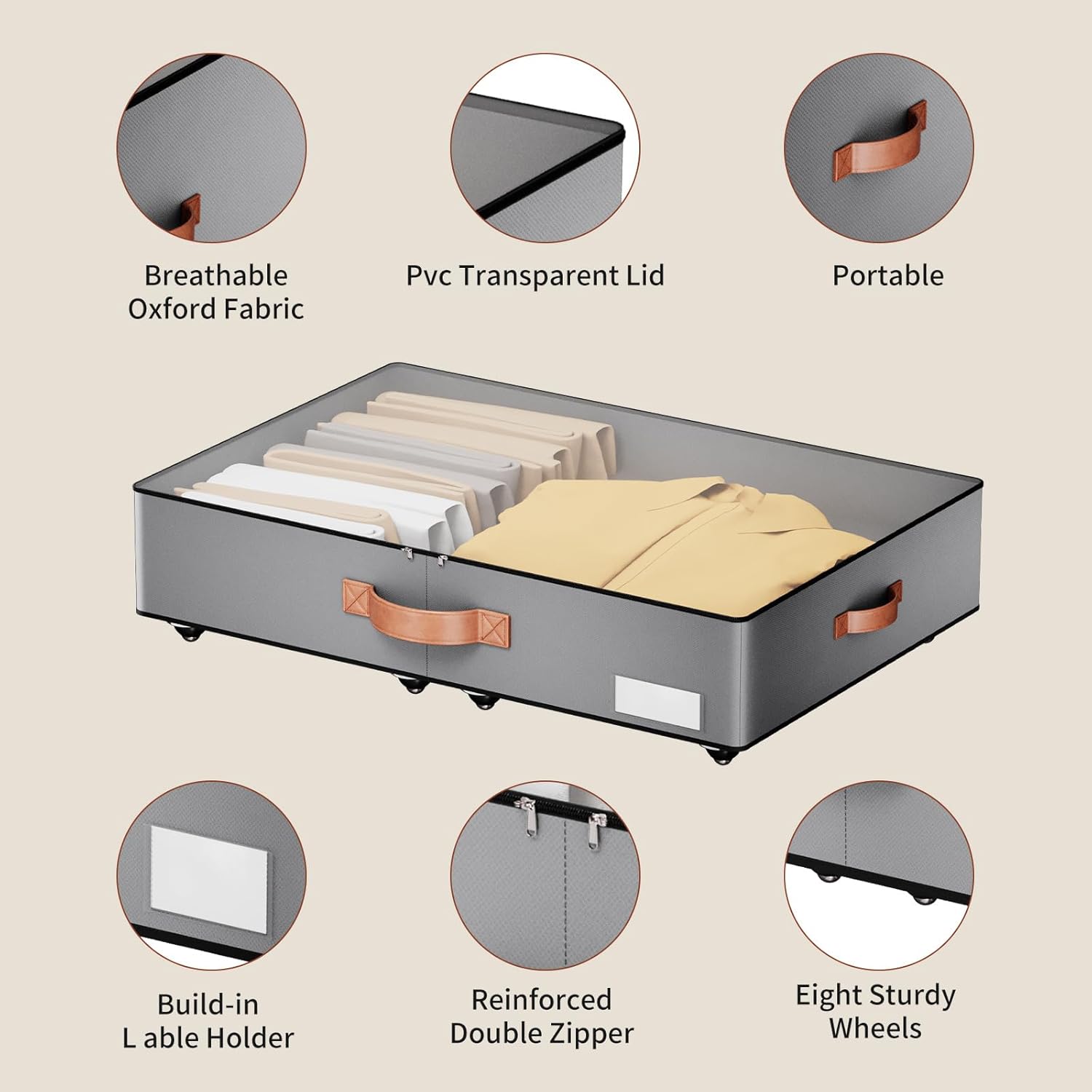 • [Easy to Move and Store]: Our Leatherspaces underbed storage with wheels allows for effortless mobility, making it a breeze to pull in and out from under the bed. With 8 packs of 360° rotating wheels, you'll experience smoother sliding and better support when accessing your items.