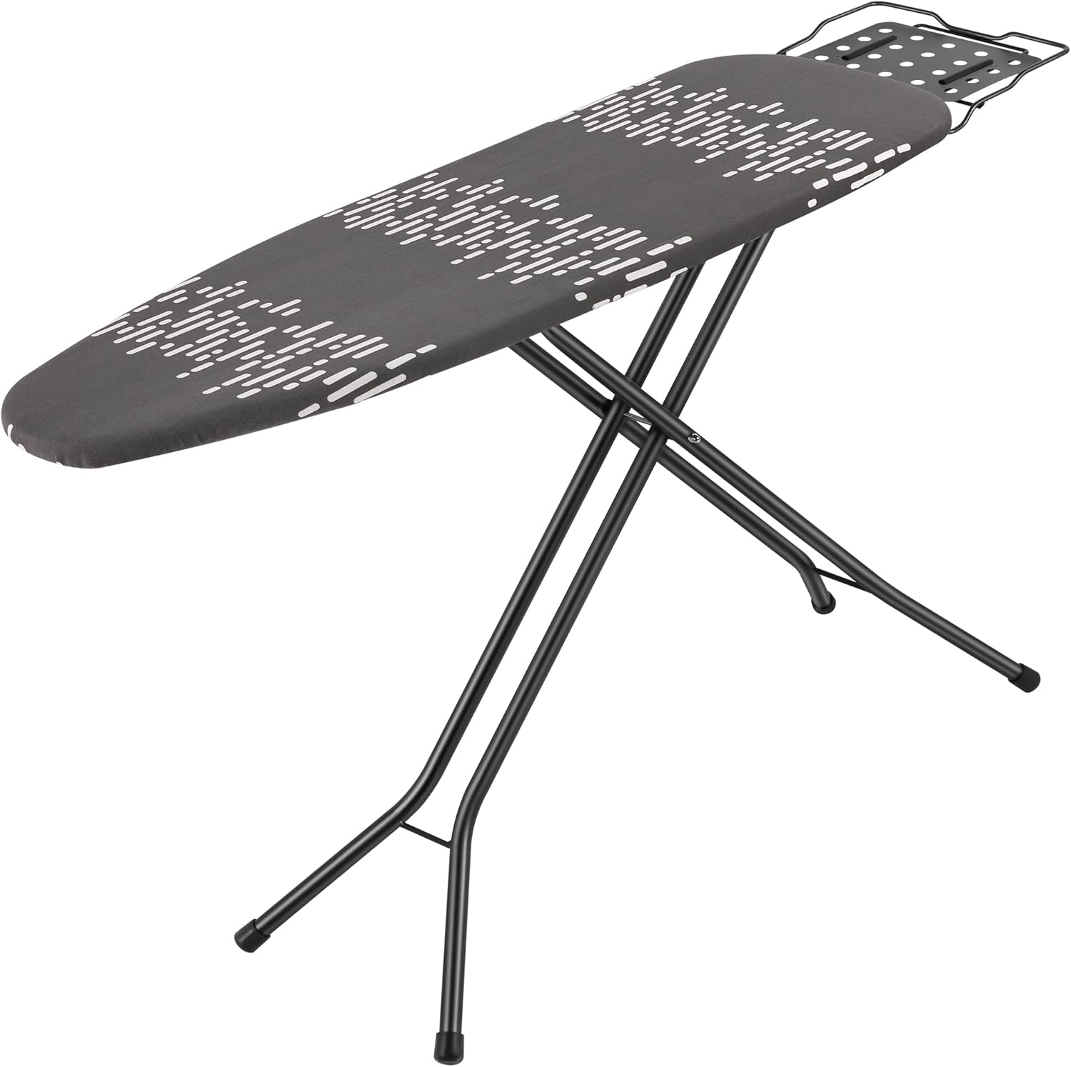 Deluxe Ironing Board with Heat Resistant Cover and Thicken Felt Pad, Safety Iron Rest, 4 Premium Steel Legs, Height Adjustable,Foldable