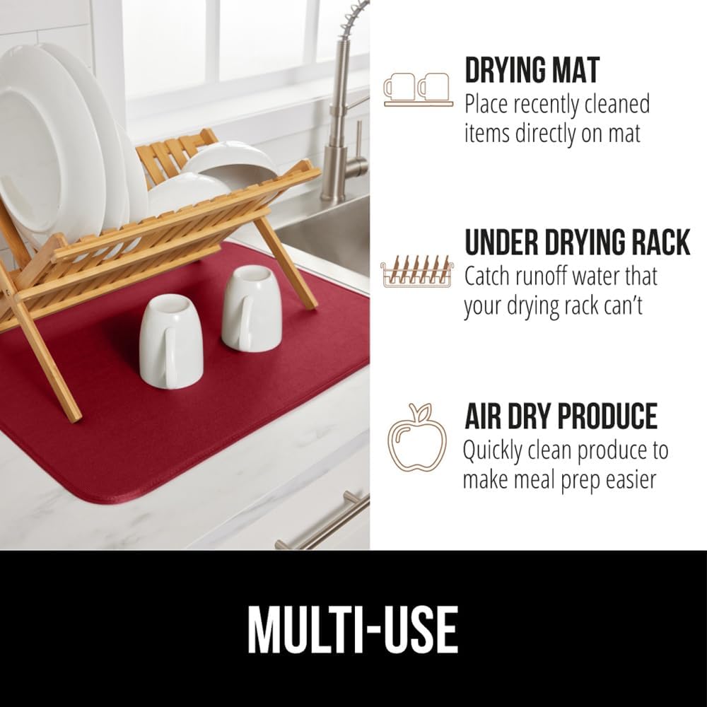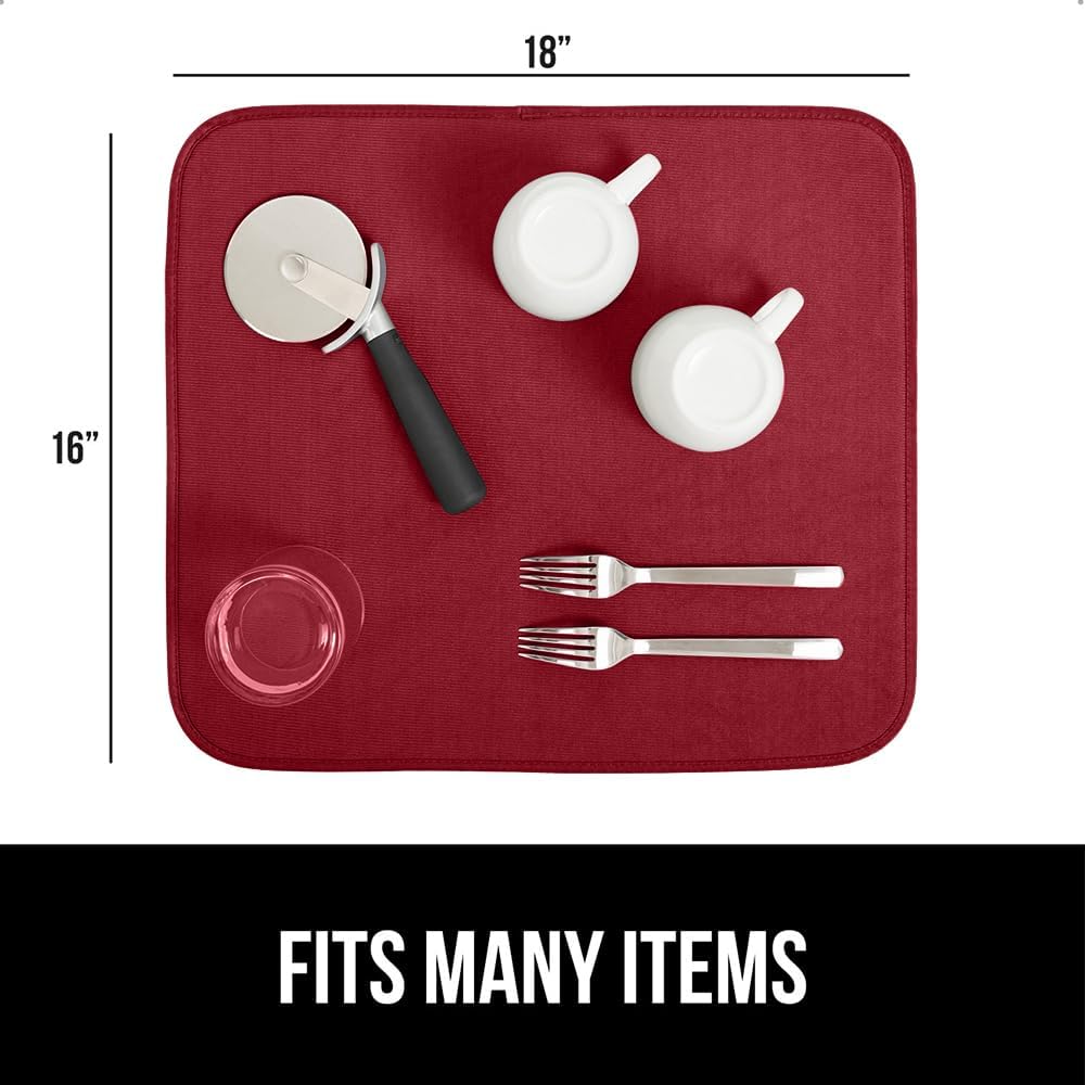 GORILLA GRIP Ultra Water Absorbent Microfiber Dish Drying Mat, Quick Dry Thick Mesh, Slip Resistant Pad for Sink Dishes or Under Rack, Kitchen Counter Accessories, 16x18, Machine Wash, 2 Pack Red